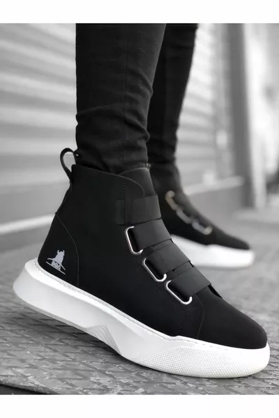 Noir & Blanc Band High Poly Sole Bottes De Sport Pour Hommes