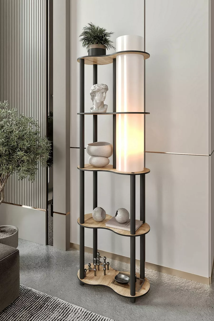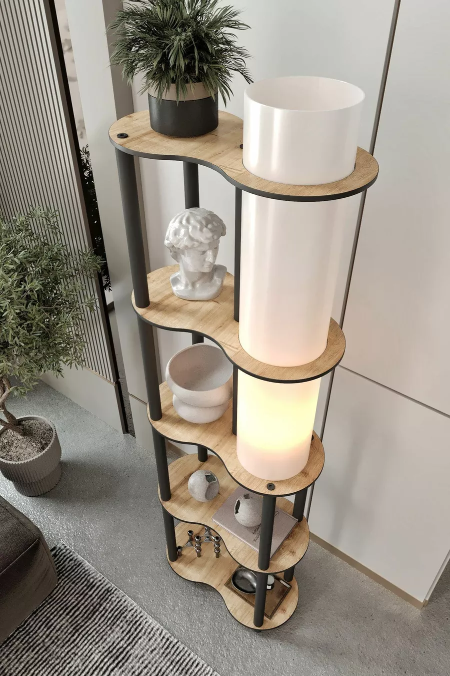 Modèle : Avec table d'appoint Couleur : Marron Matériau : Bois Nombre de douilles : 1 Type de douille : E27 Hauteur : 151-200 cm Caractéristique : Avec étagère