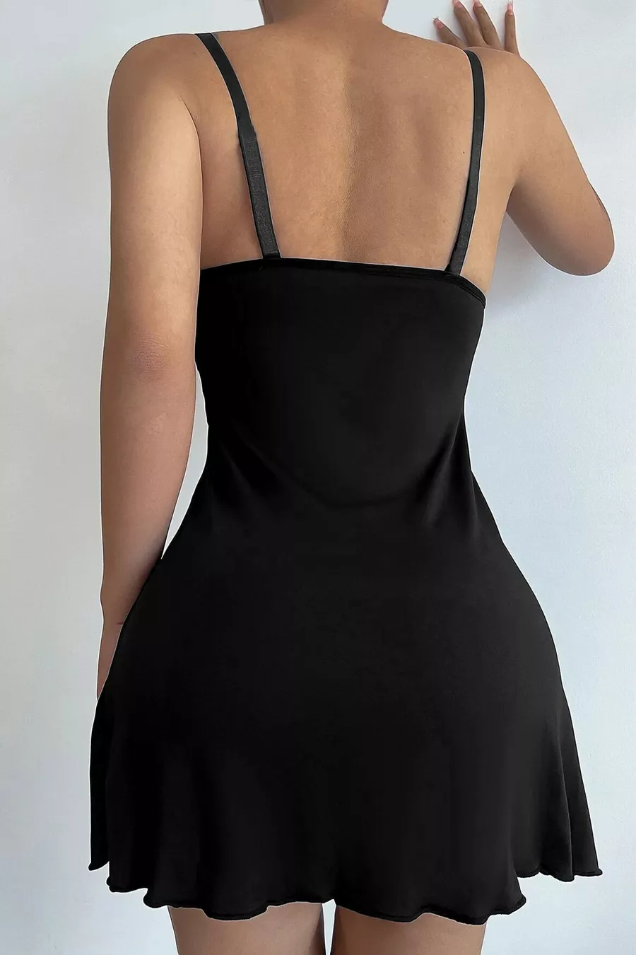 Nuisette élégante pour femme noire à bretelles, taille en dentelle et nœud sur la poitrine