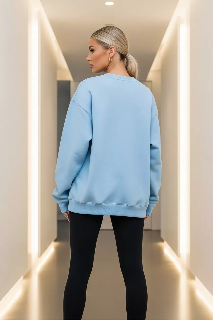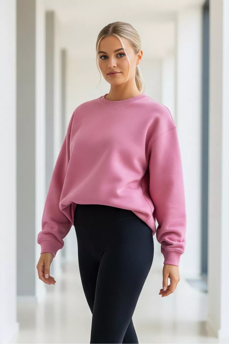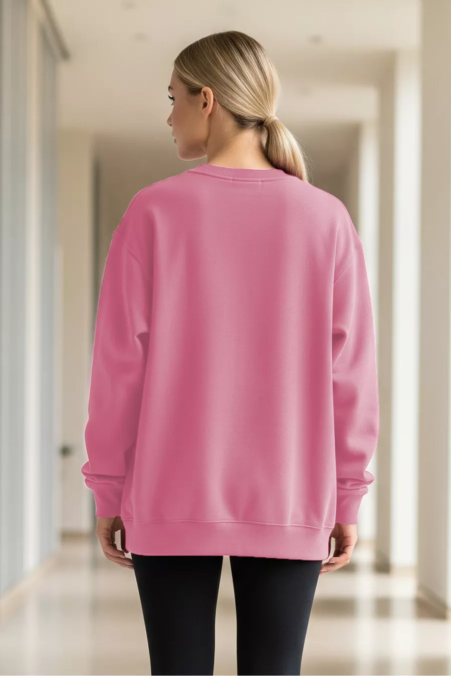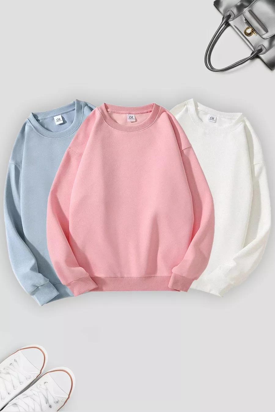 Pack de 3 sweat-shirts oversize unisex à col rond en rose, écru et bleu bébé