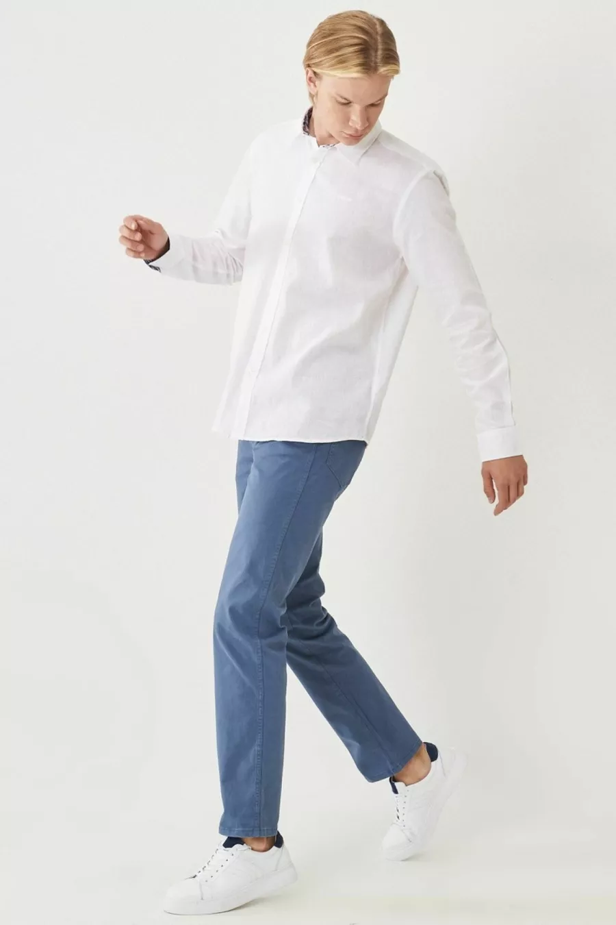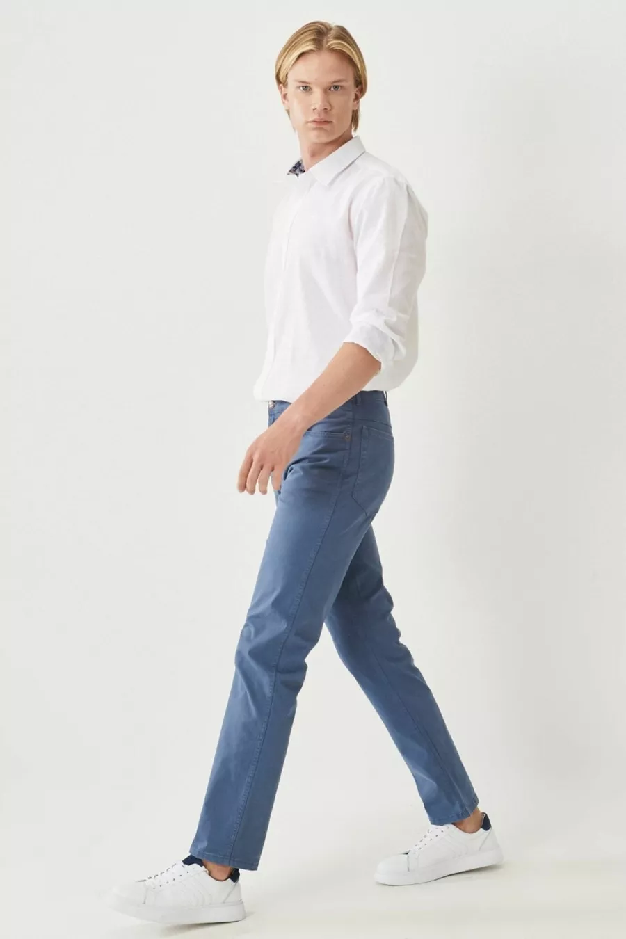 Pantalon bleu extensible coupe droite Texas