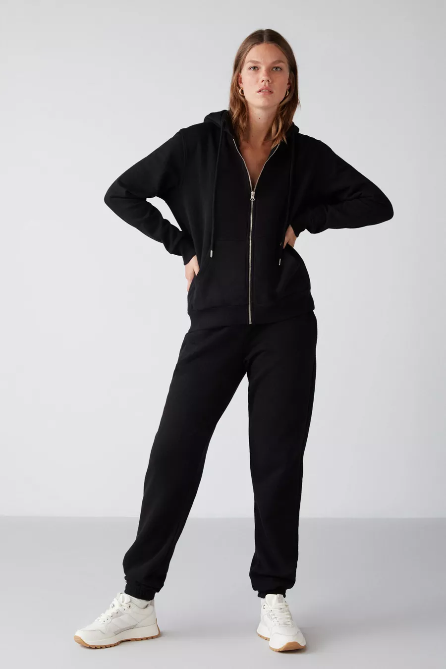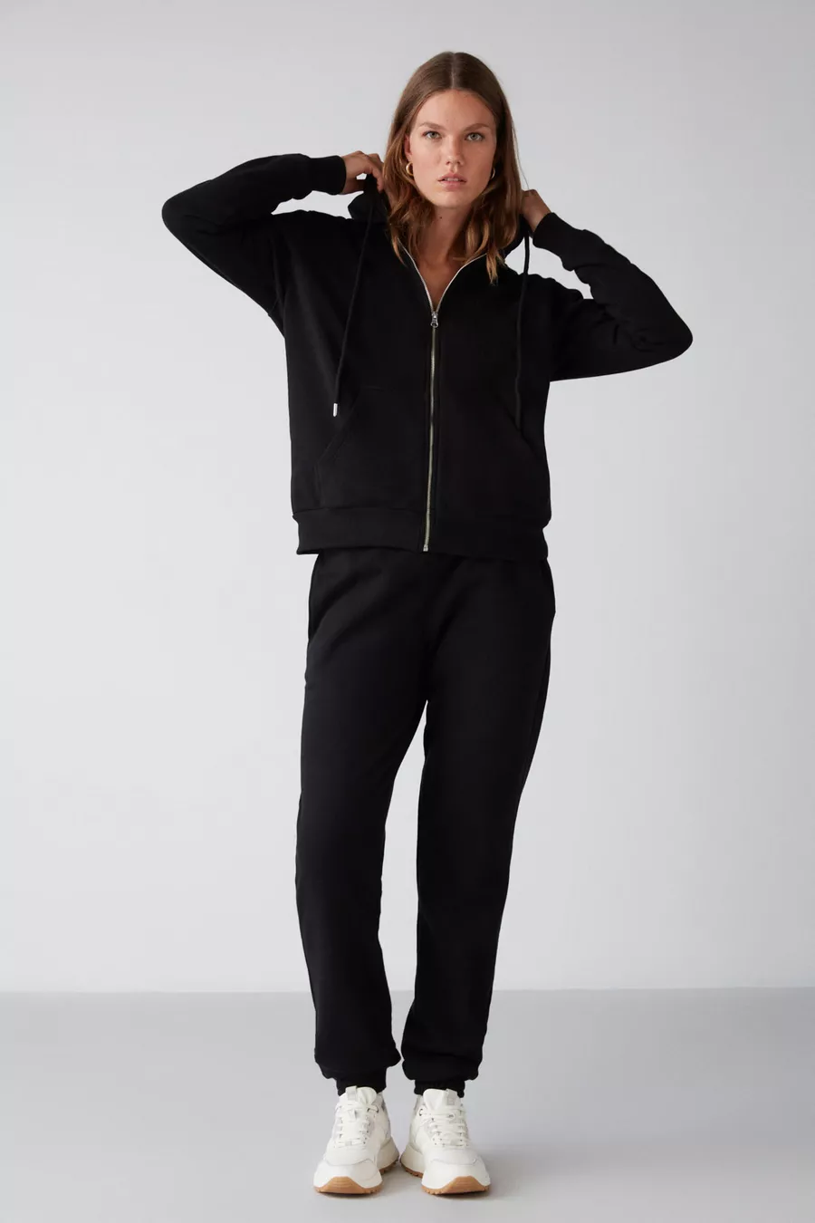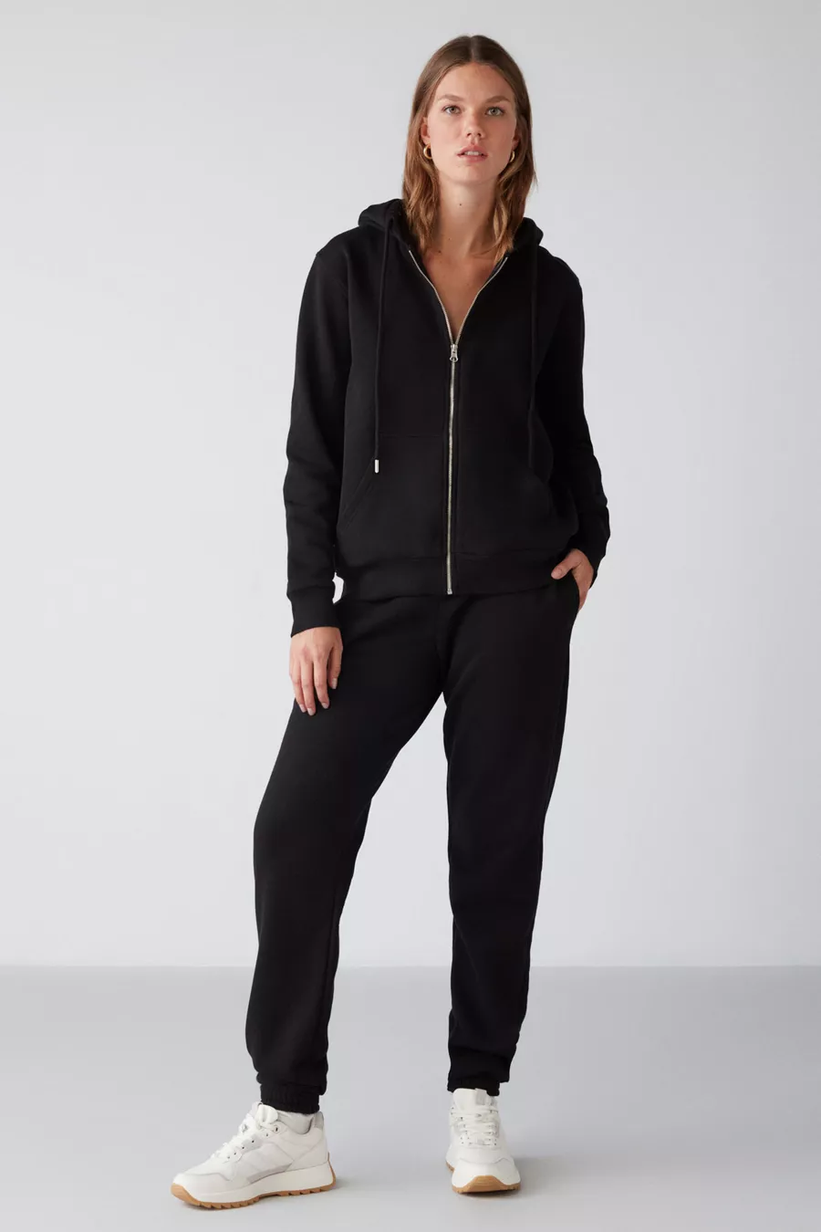Pantalon de survêtement Marıtza pour femme, coupe régulière, taille et chevilles élastiquées, doublure polaire, noir