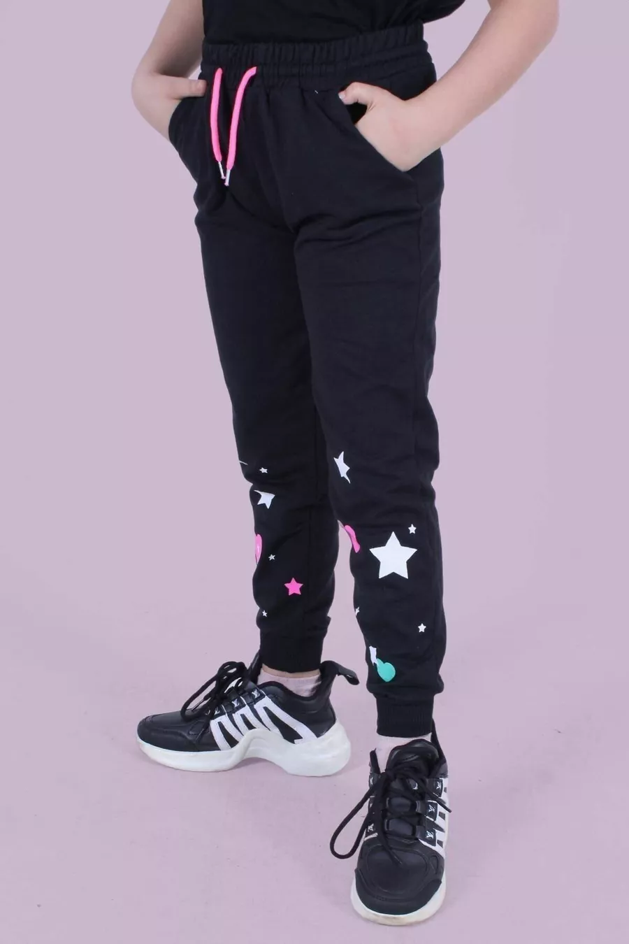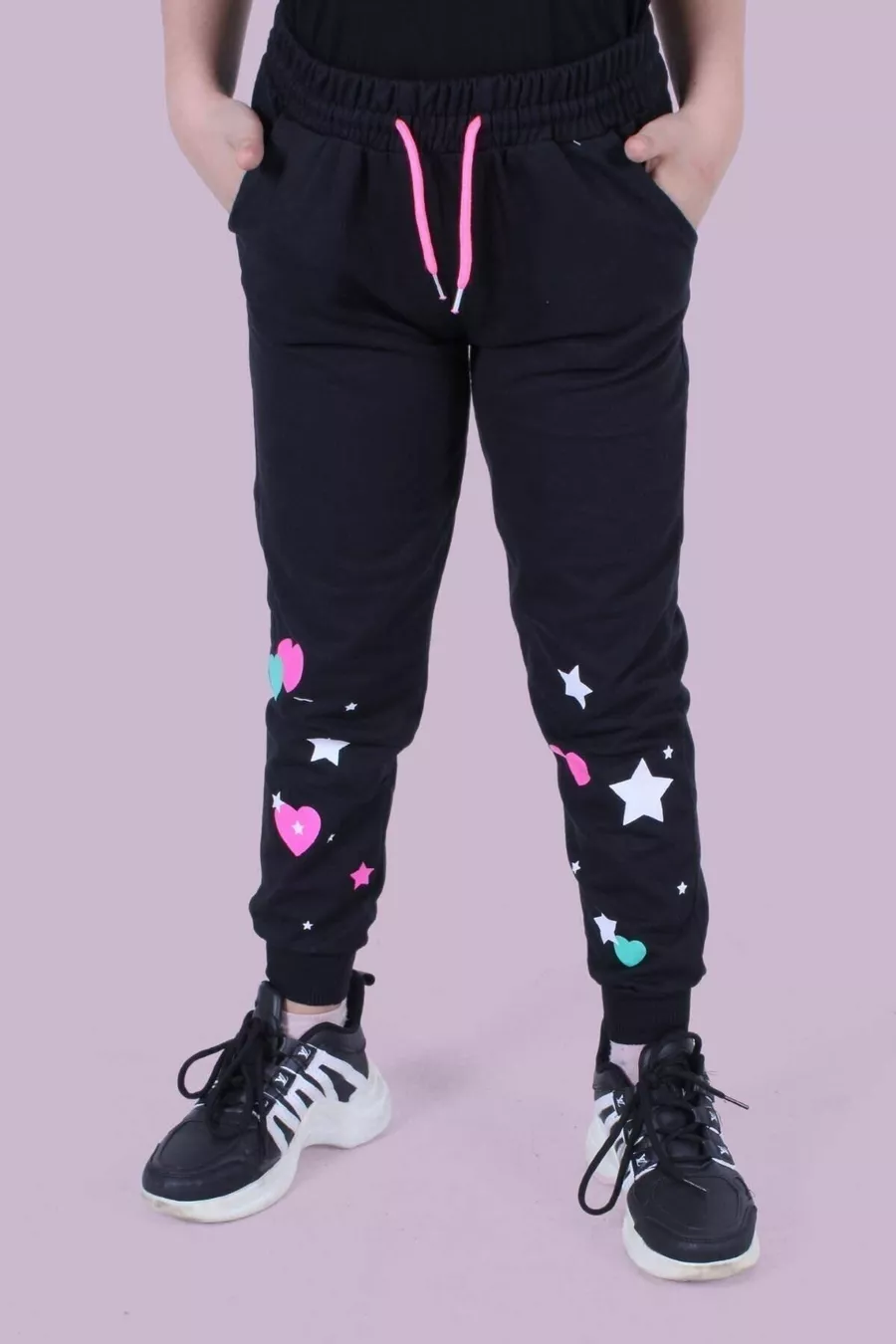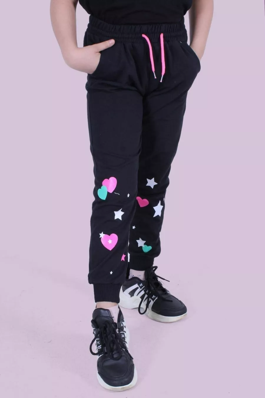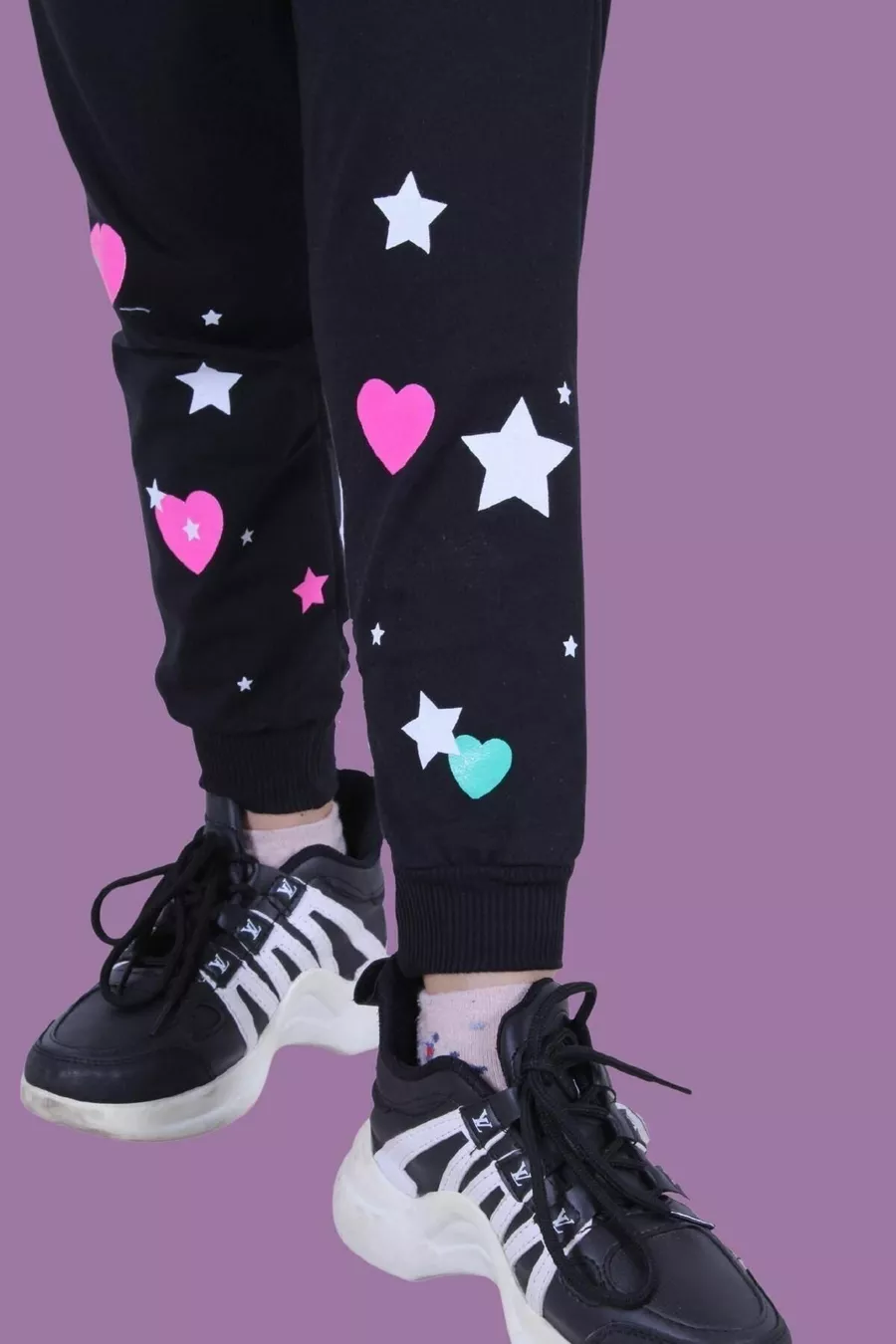 Pantalon de survêtement noir pour fille avec détails motif cœur et étoile