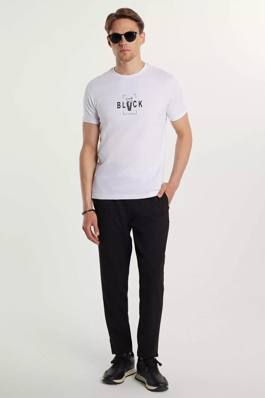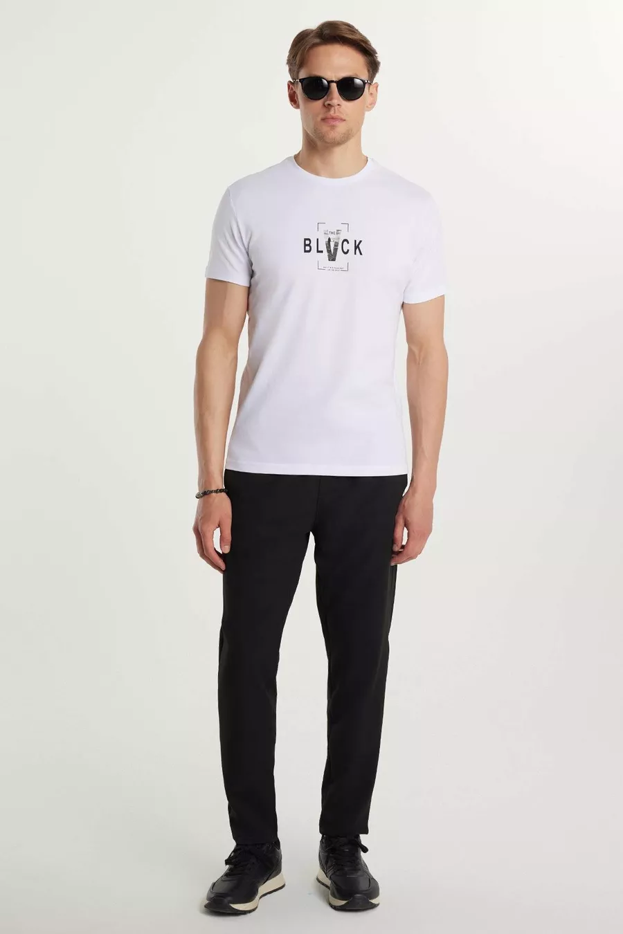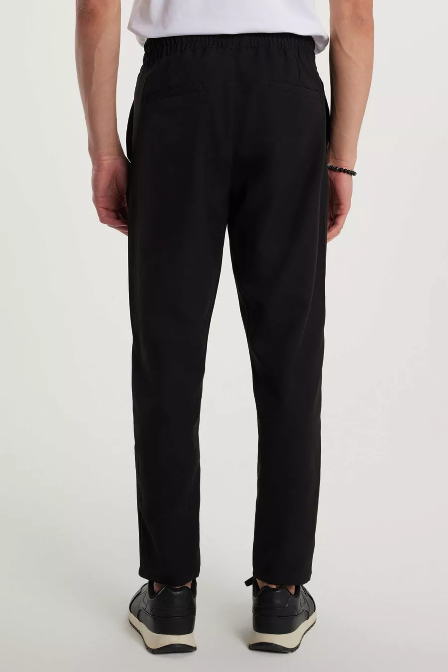Pantalon de jogging homme Regular Fit noir taille élastique avec cordon, coupe confortable, poches latérales