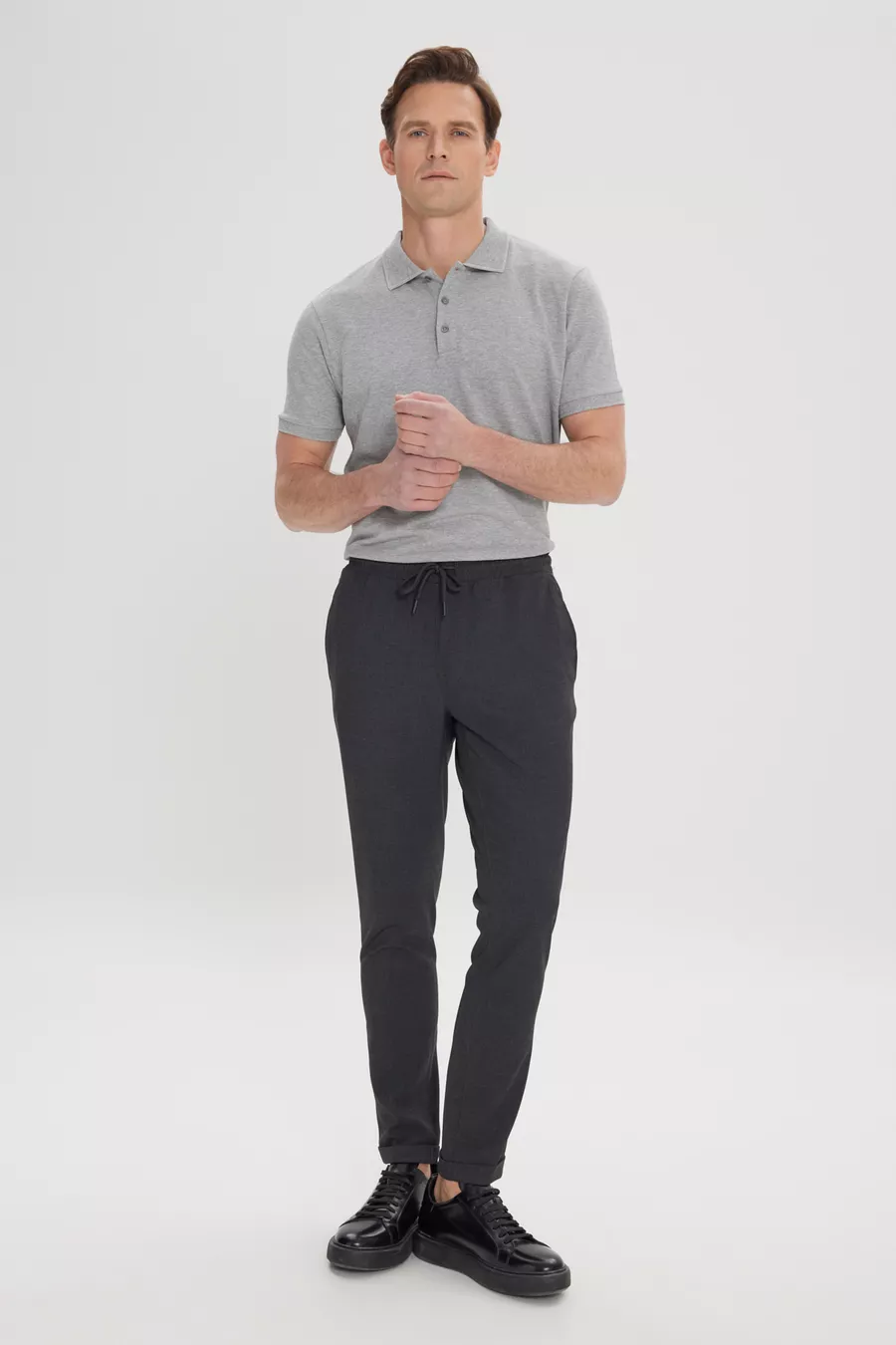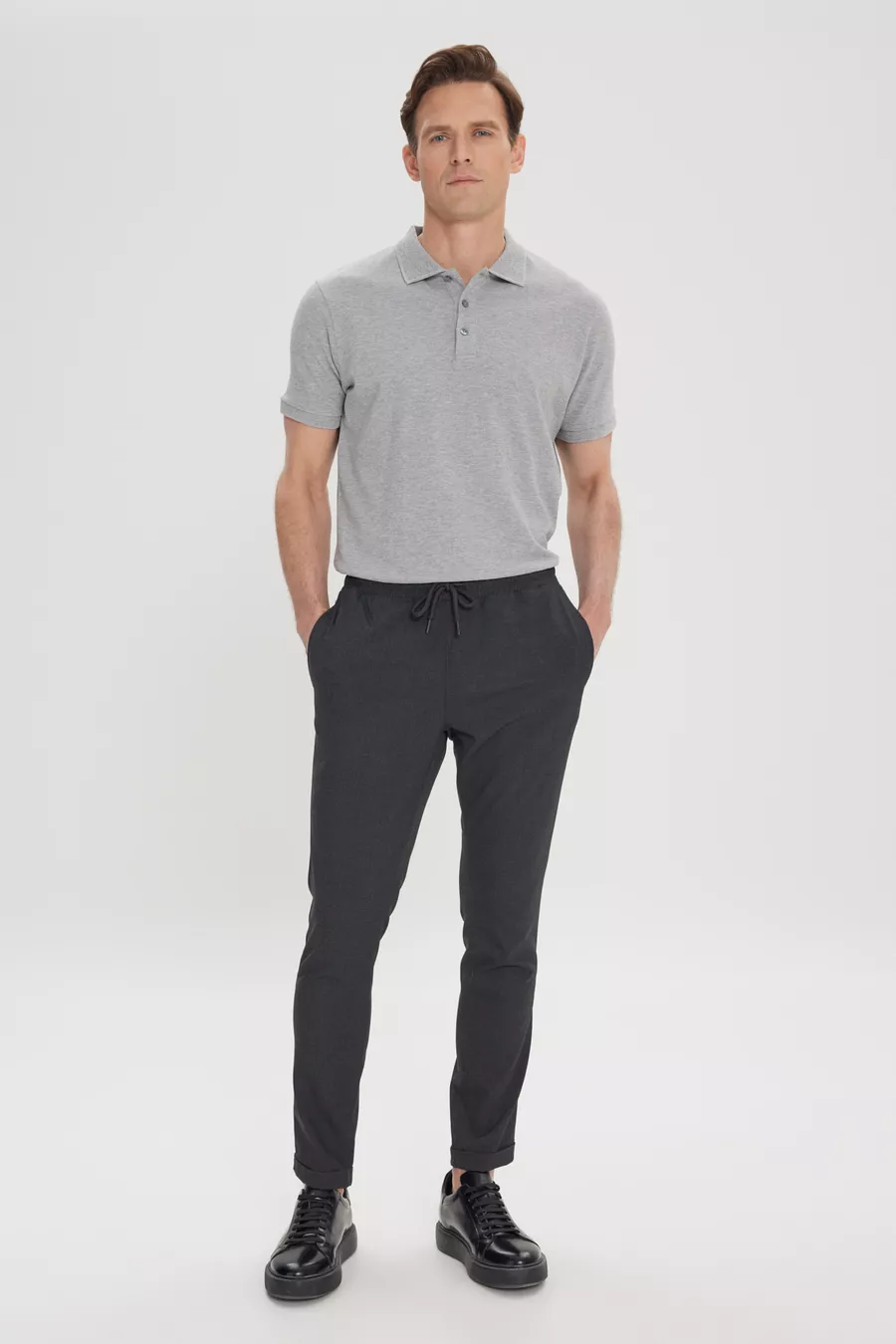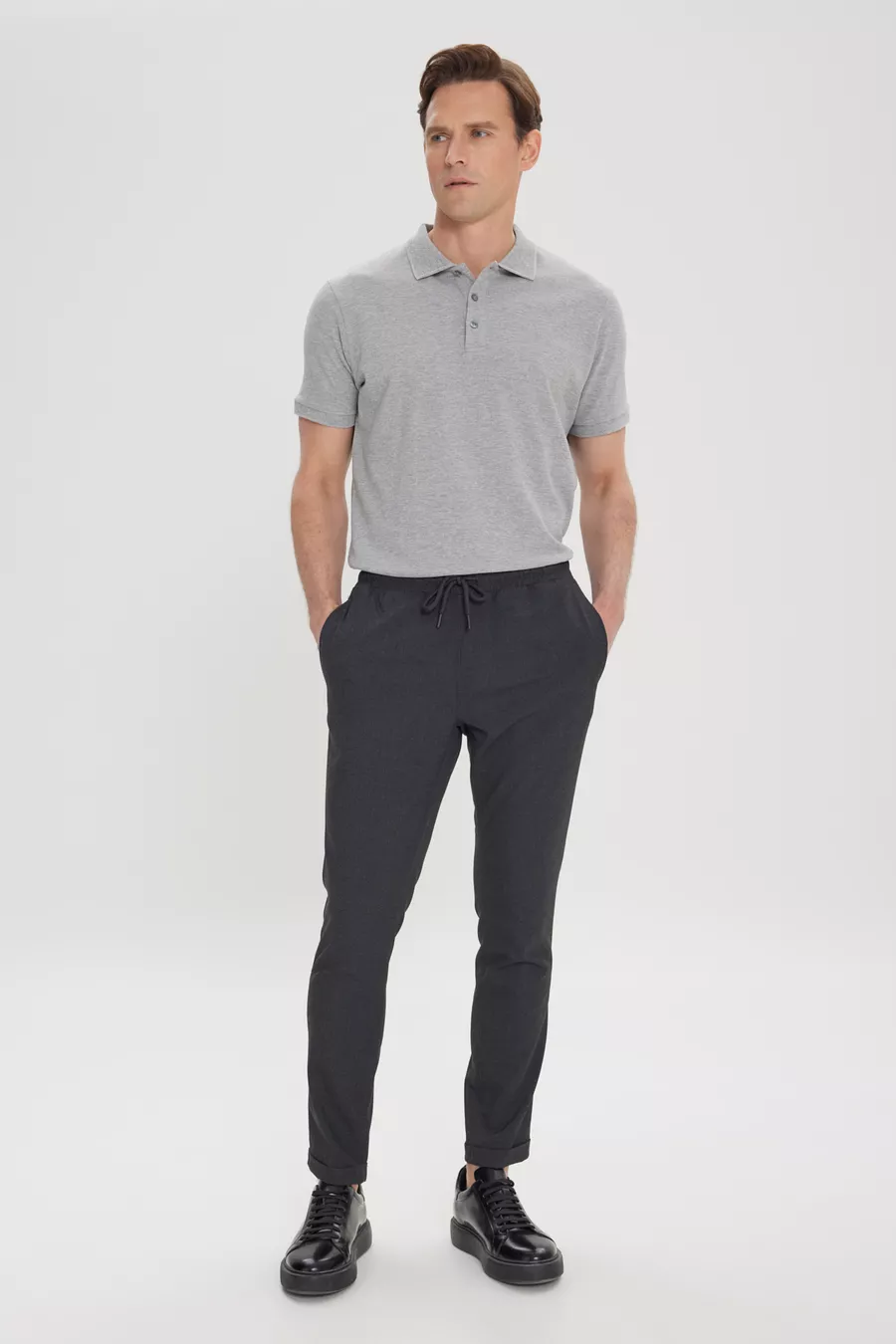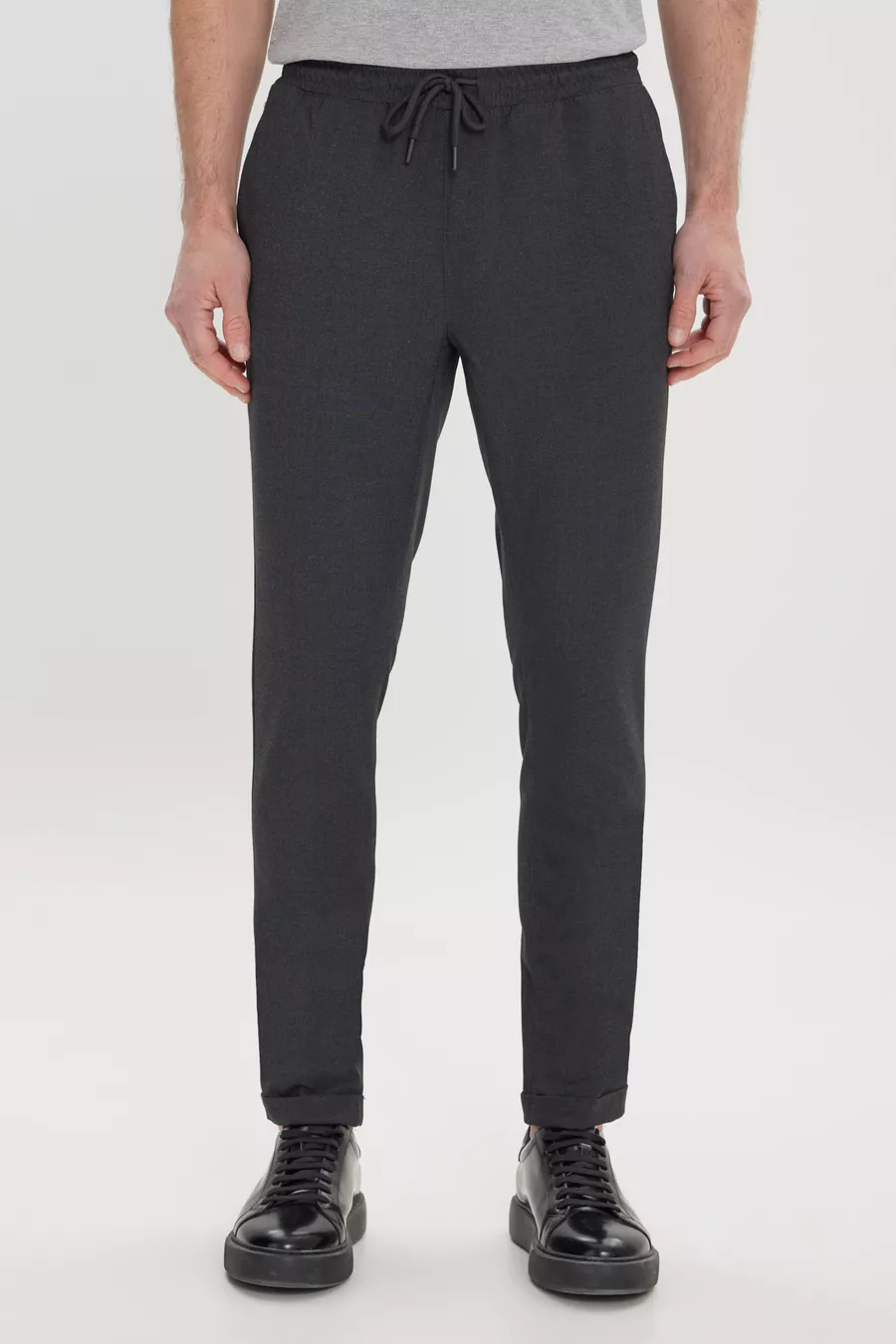 Pantalon de jogging pour homme anthracite, coupe slim confortable, taille à cordon, poches latérales