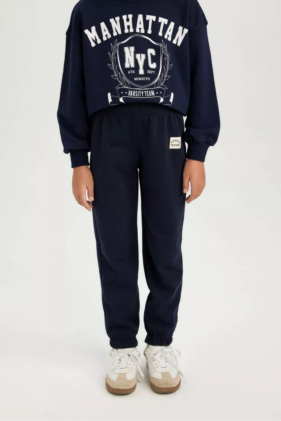 Pantalon de survêtement jogger pour fille avec étiquette en tissu, taille et chevilles élastiquées WN