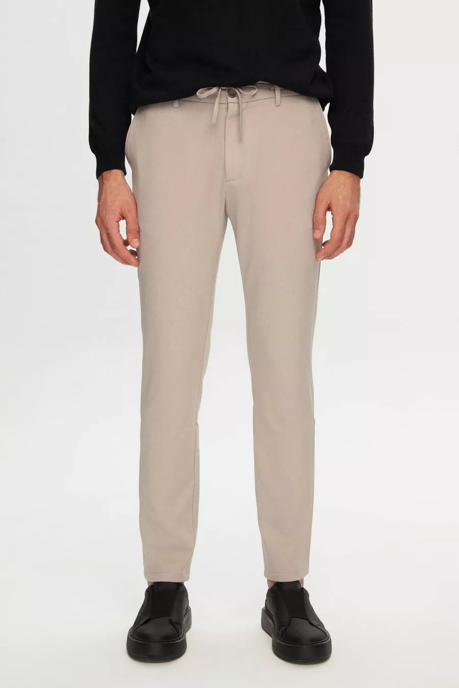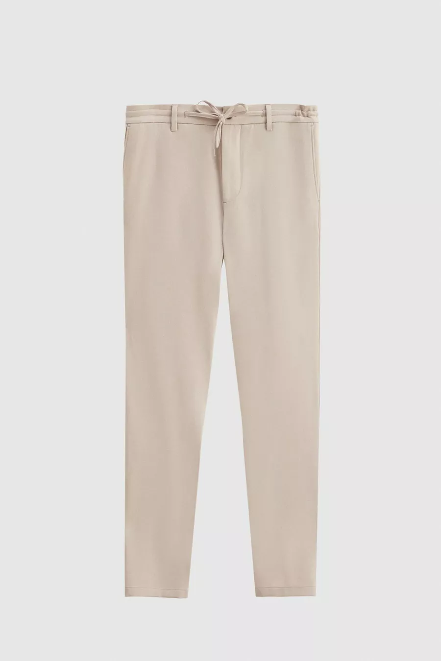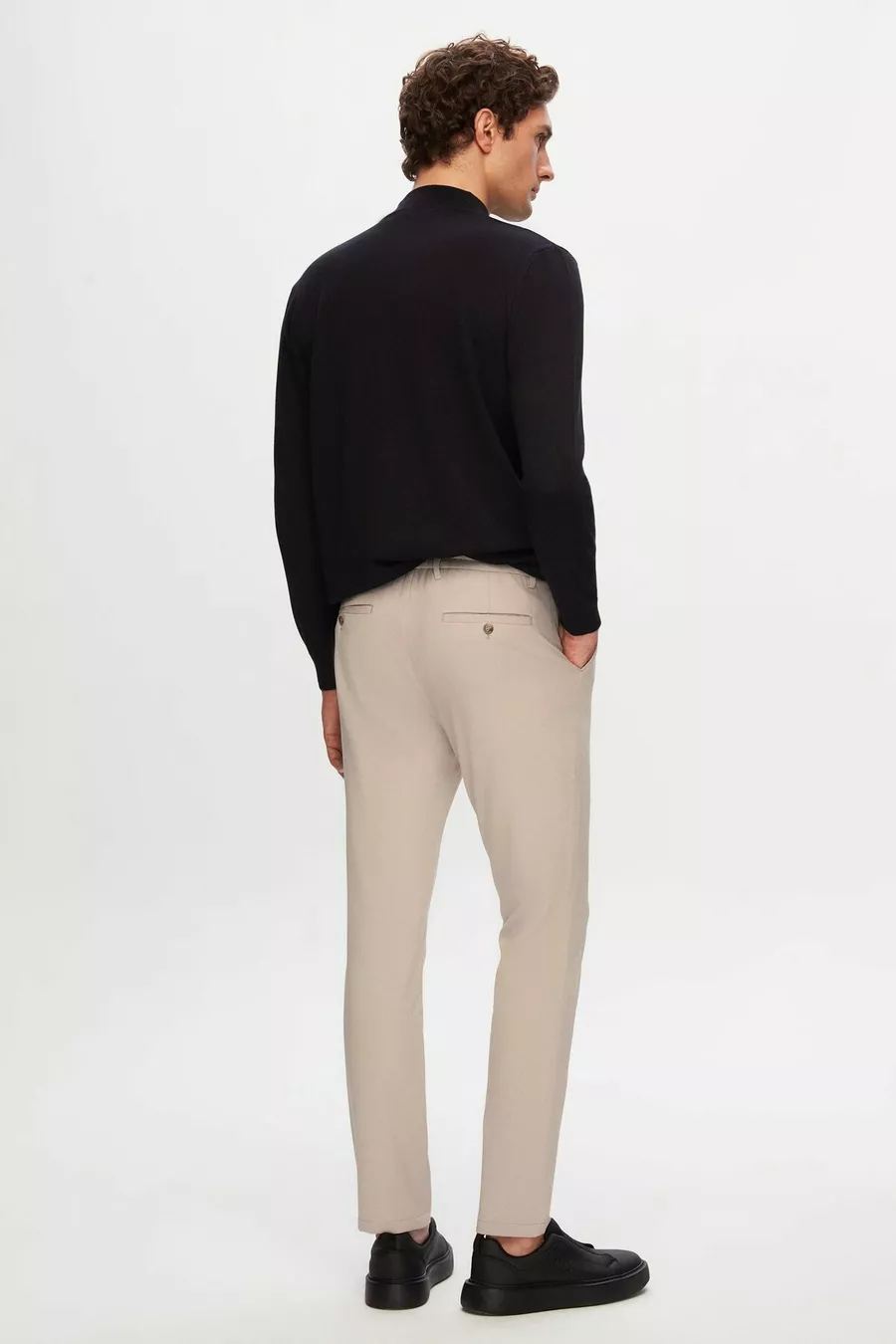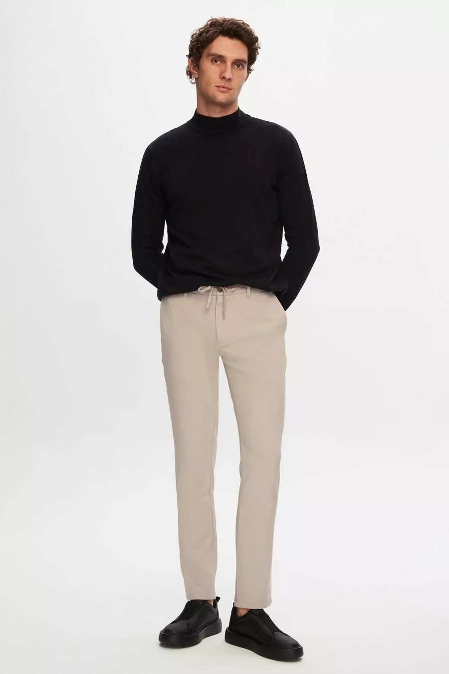 Pantalon de jogging Slim Fit beige pour homme, taille élastique avec cordon et fermeture éclair, confortable et extensible