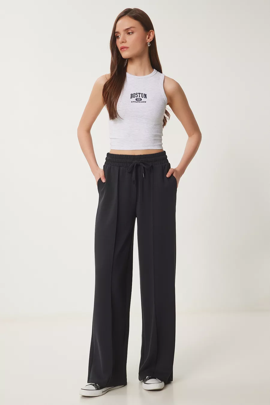S'assurant à la taille, s'élargissant jusqu'à la cheville • Lavable en machine à 30 degrés • L'utilisation de produits blanchissants n'est pas recommandée • L'utilisation du sèche-linge n'est pas recommandée • Repassage conseillé à l'envers et à basse température • Pour des instructions d'entretien détaillées, veuillez consulter l'étiquette du produit.