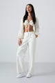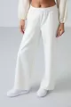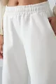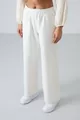 Pantalon de survêtement femme confortable à taille haute avec poches, jambe large, couleur écrue -
