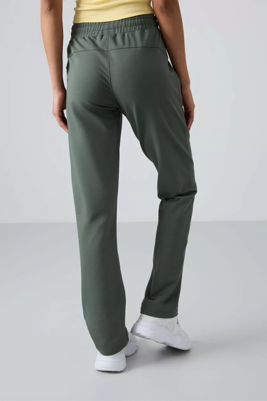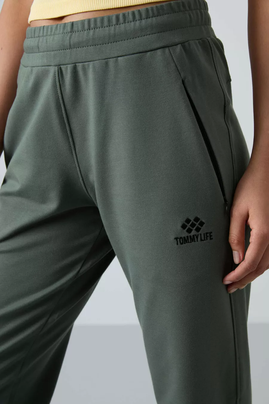 Pantalon de survêtement femme kaki à taille secrète avec fermetures éclair, coupe confortable classique -