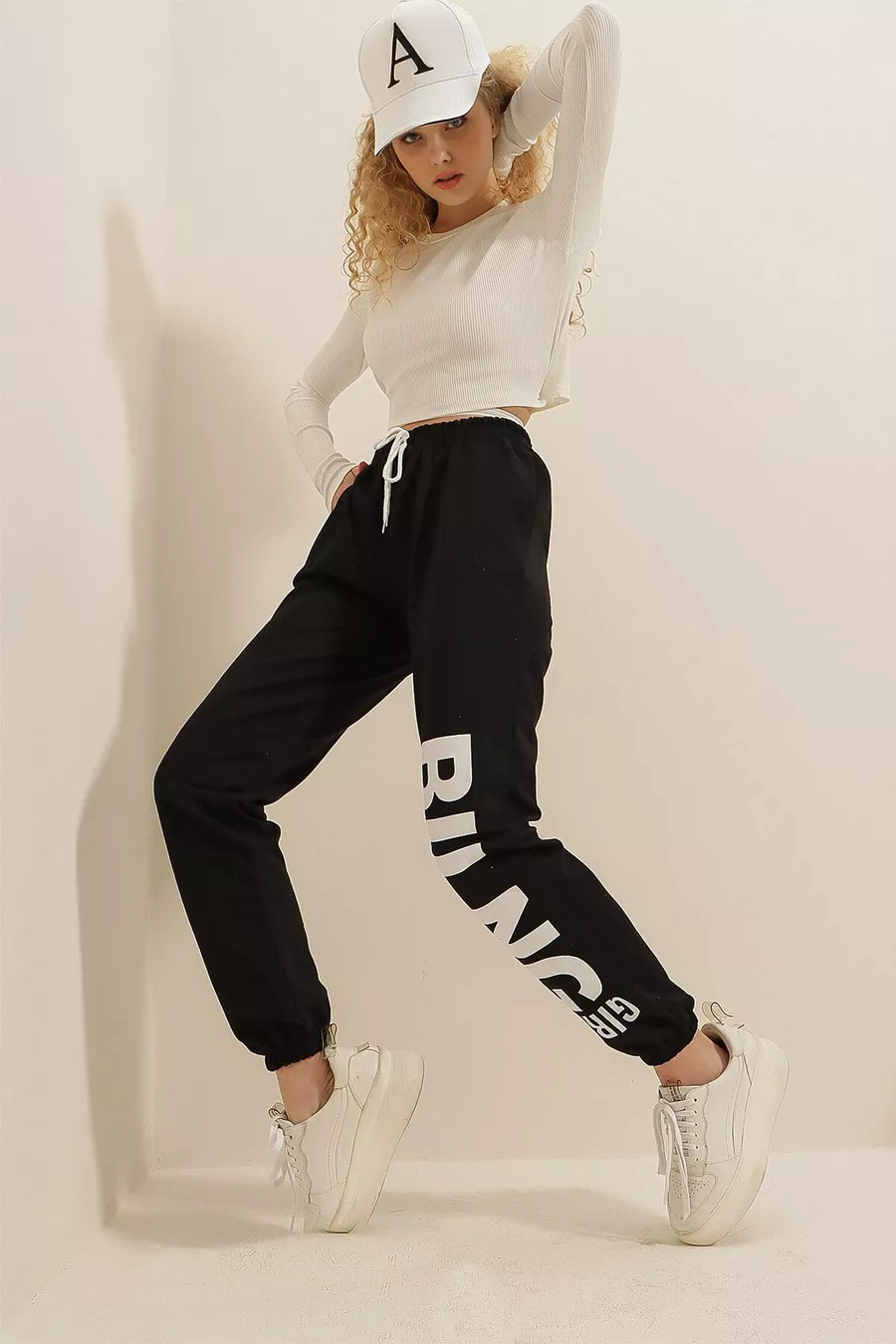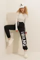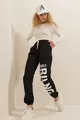 Pantalon de survêtement femme en deux fils, taille et chevilles élastiques, imprimé texte,