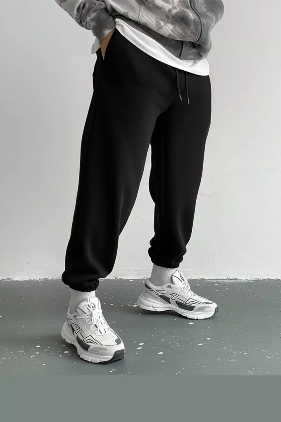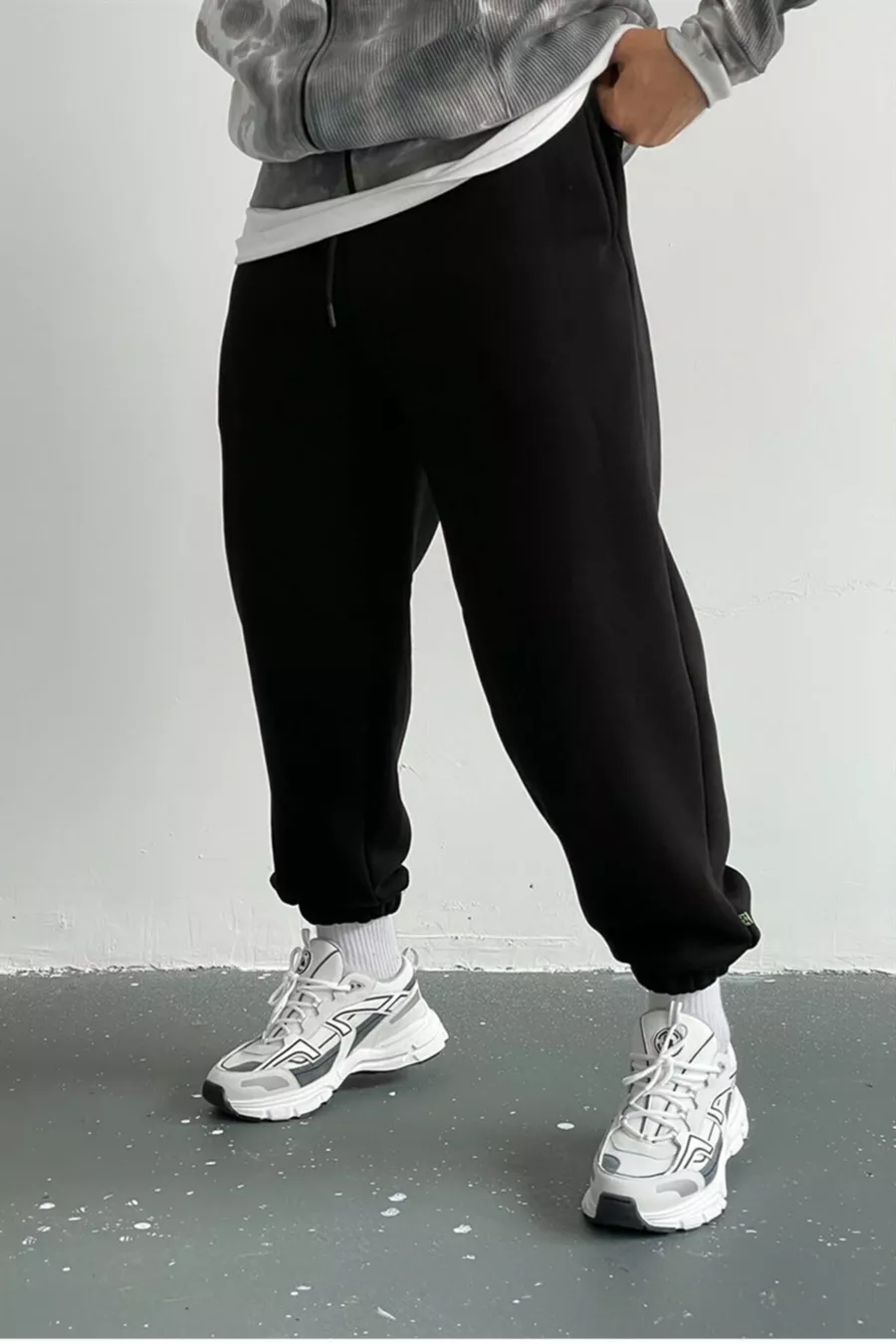 Pantalon de survêtement noir en molleton à 3 fils