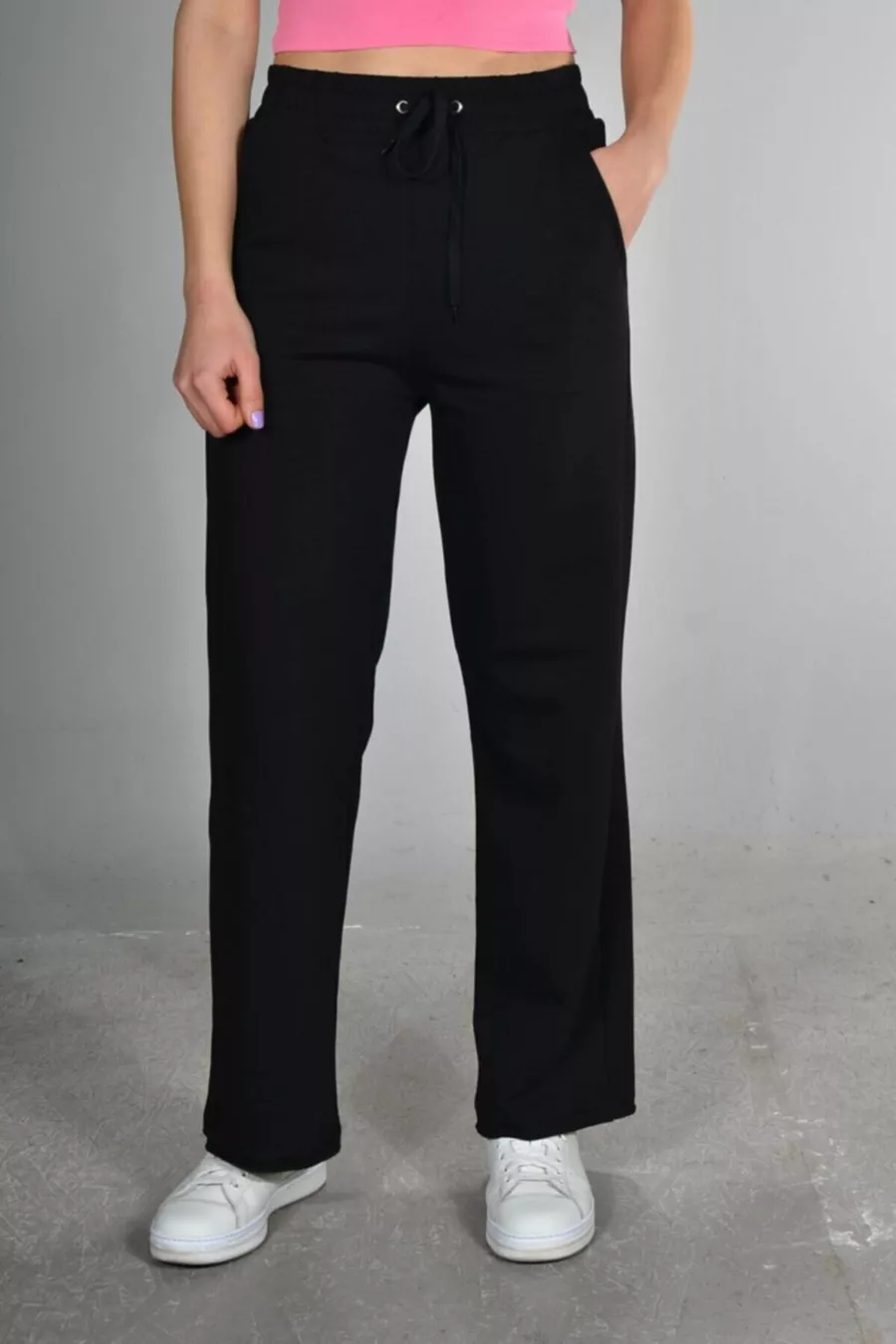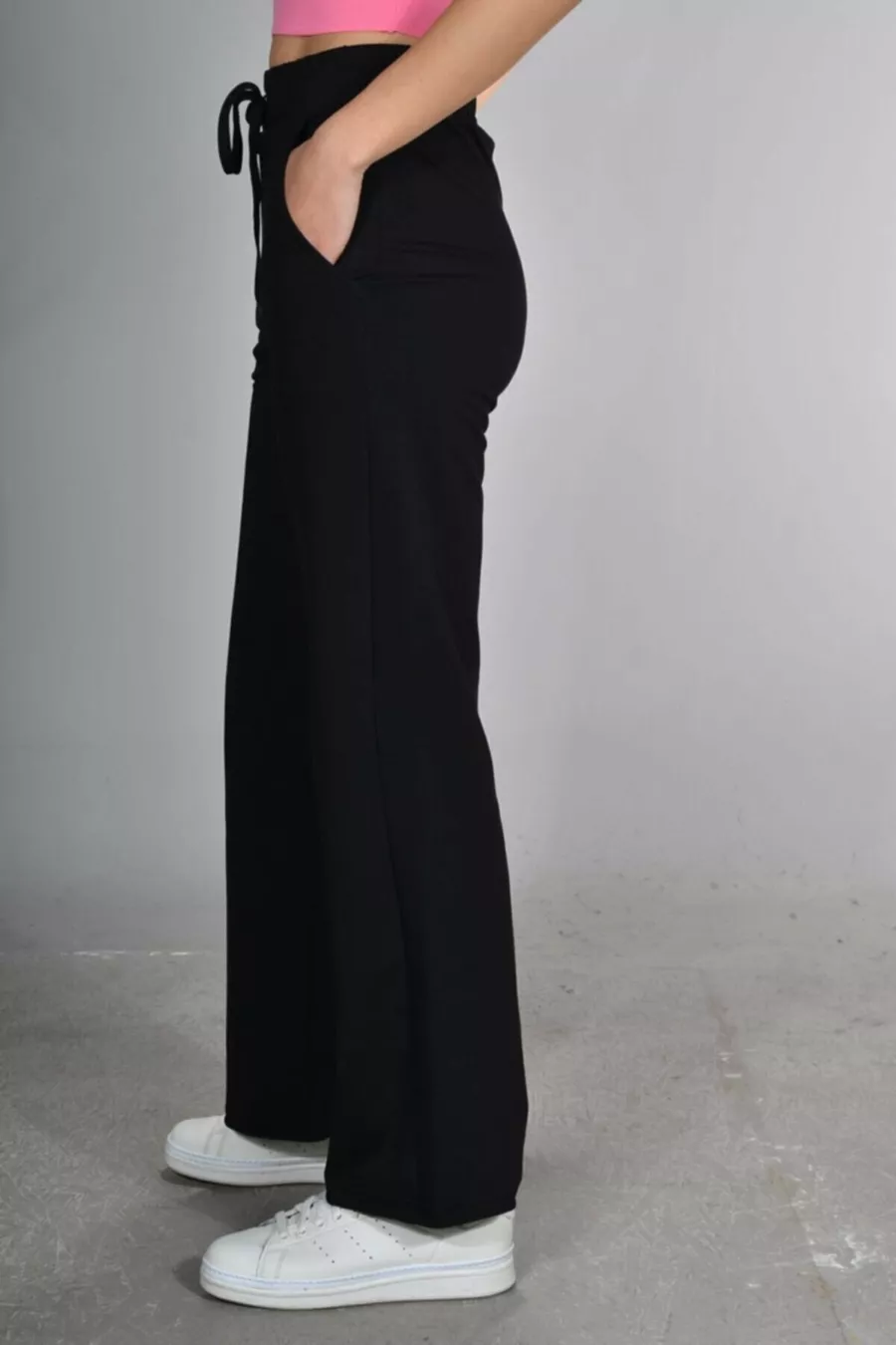 Pantalon de survêtement femme noir à jambes larges en double maille