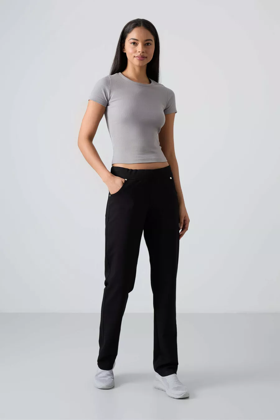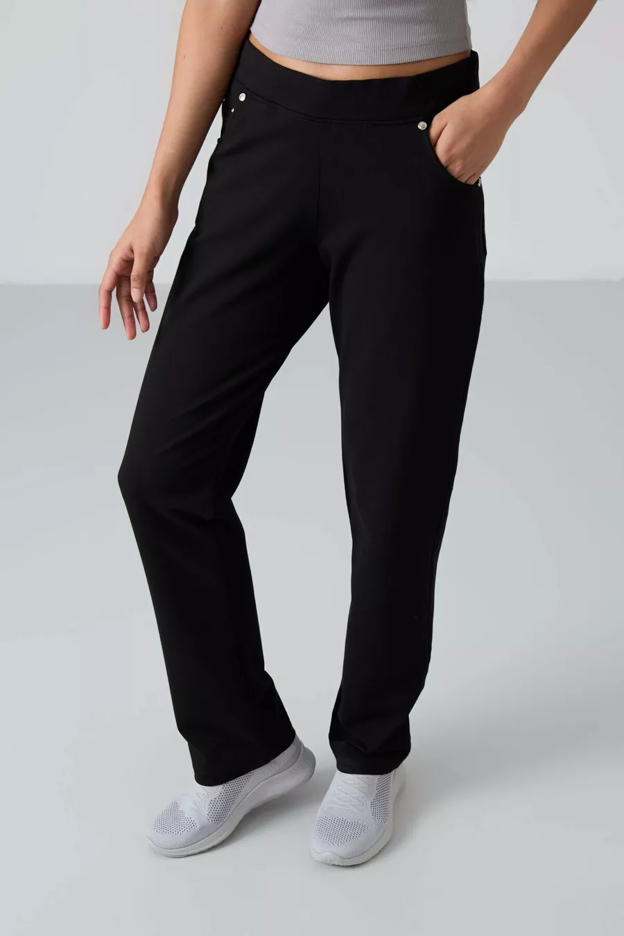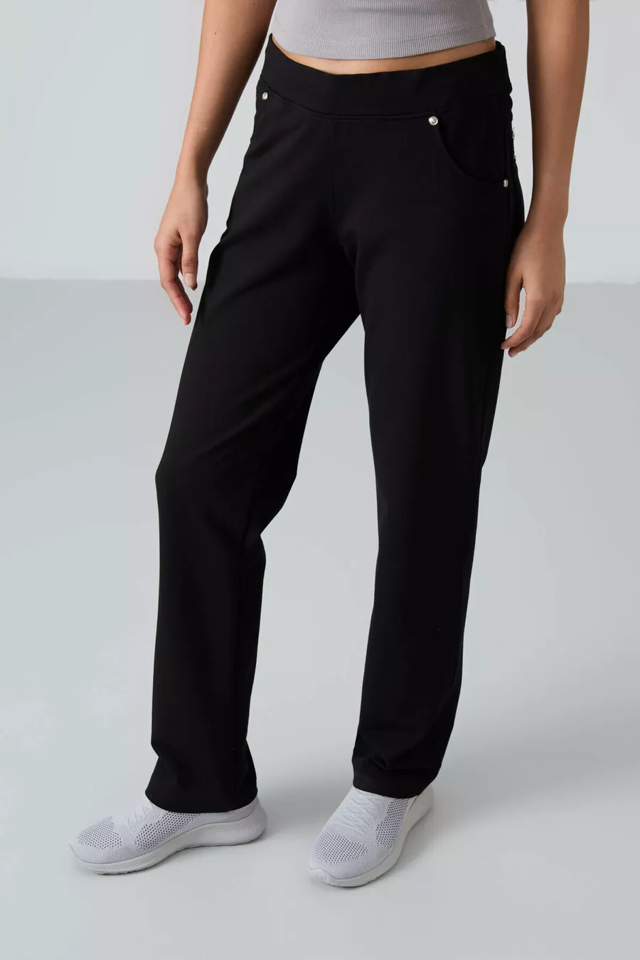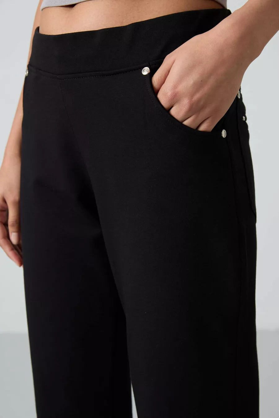 Pantalon de survêtement pour femme à coupe classique, confortable, avec poches et détails en pierre noire -