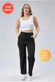 Pantalon de survêtement femme Curve noir à double poche, taille élastique, jambes fuselées côtelées