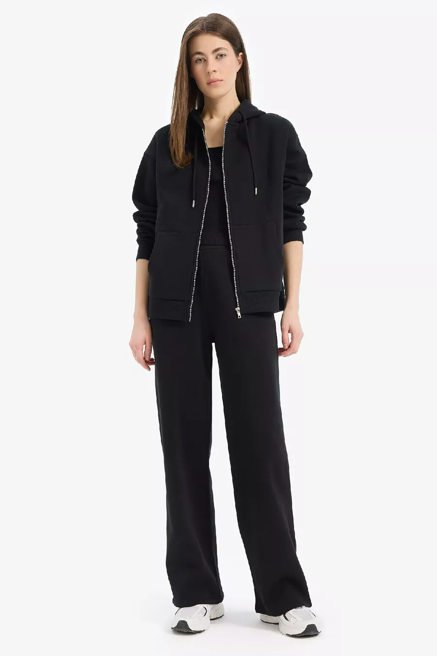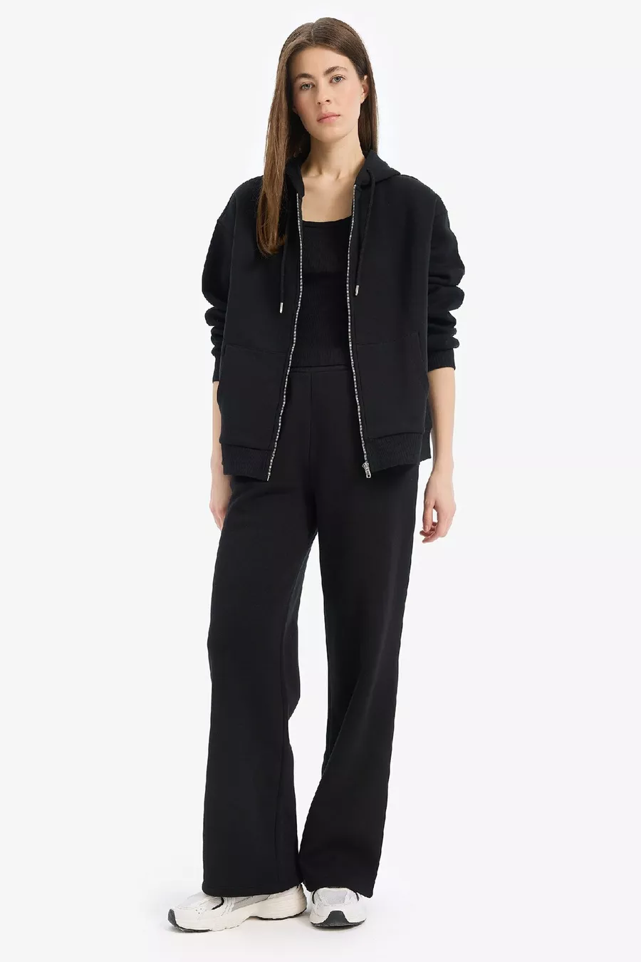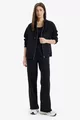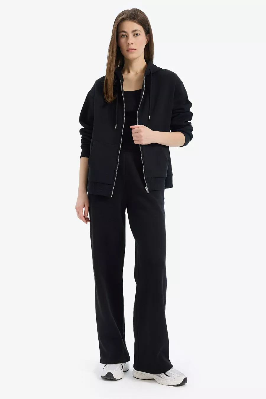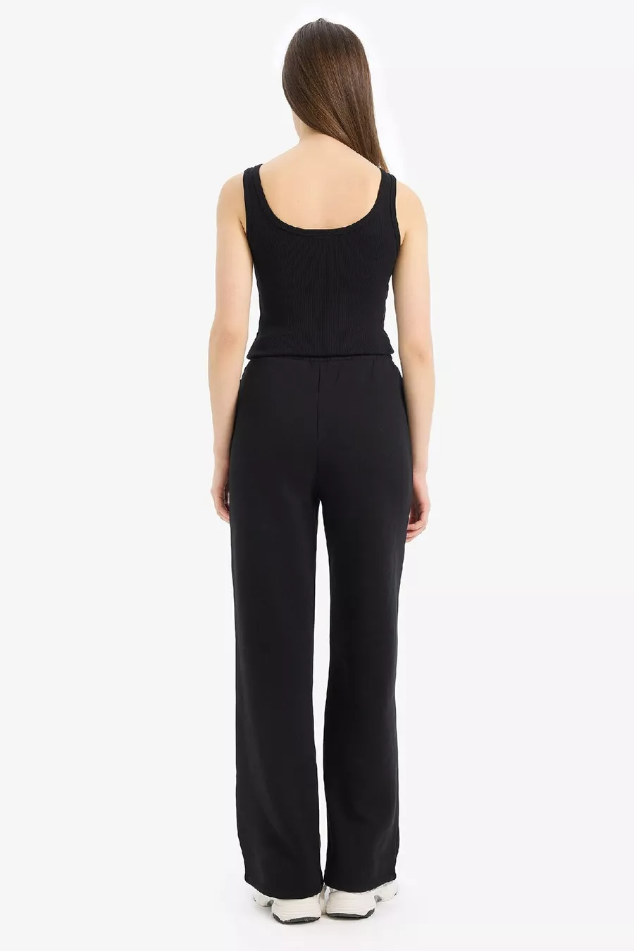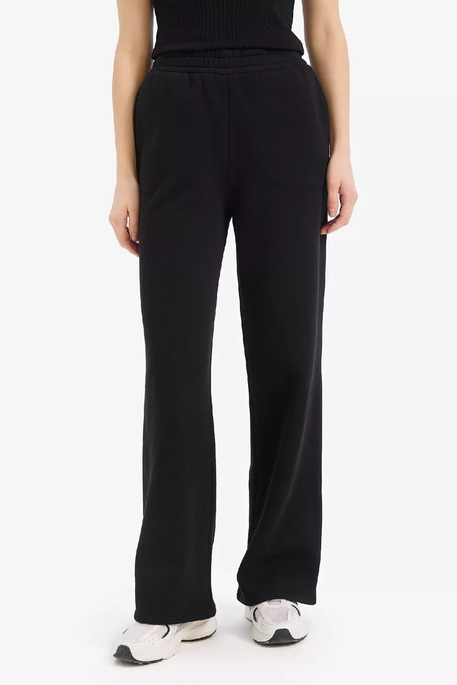 Pantalon de survêtement droit épais taille élastique avec poches, taille haute, basique uni wn
