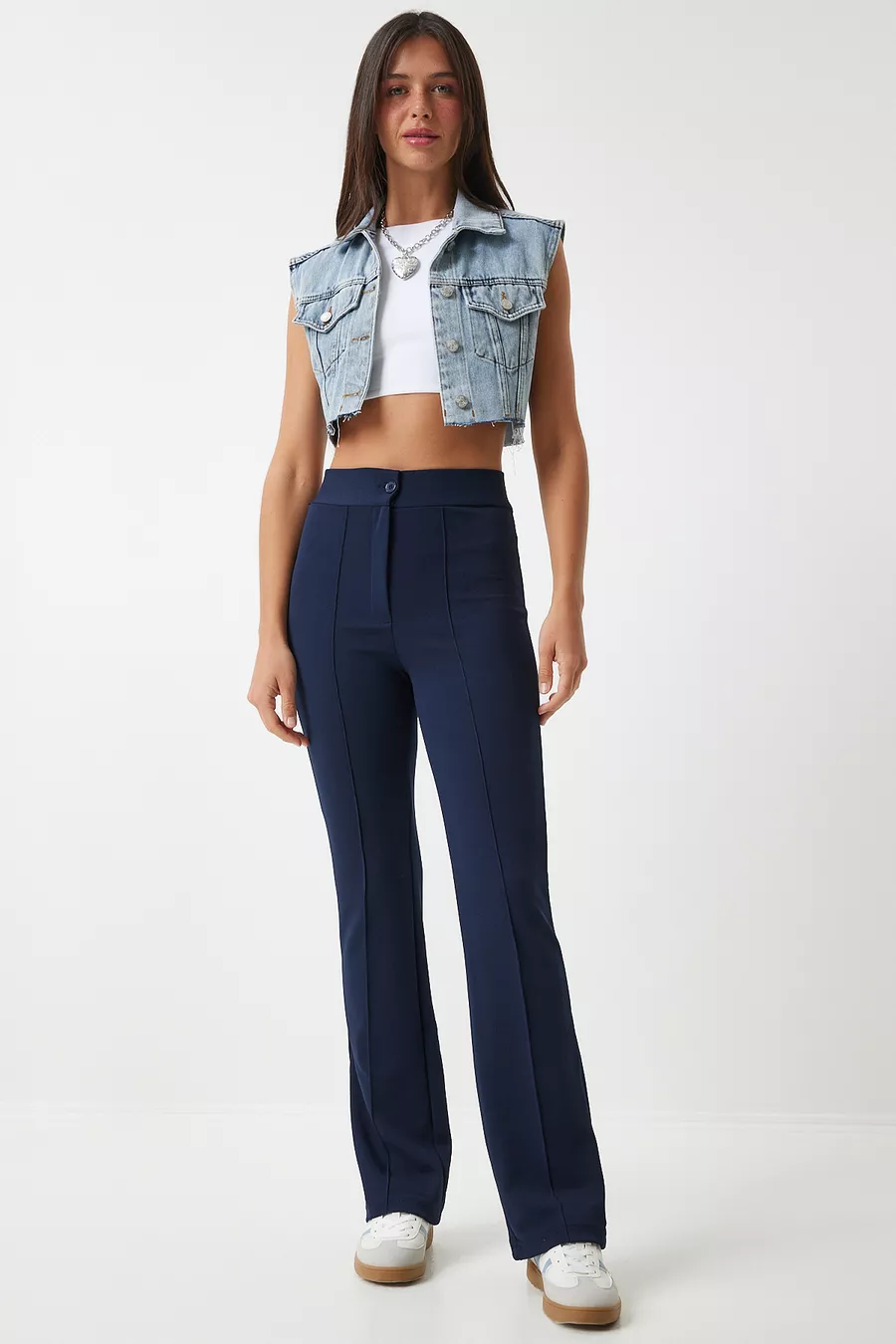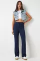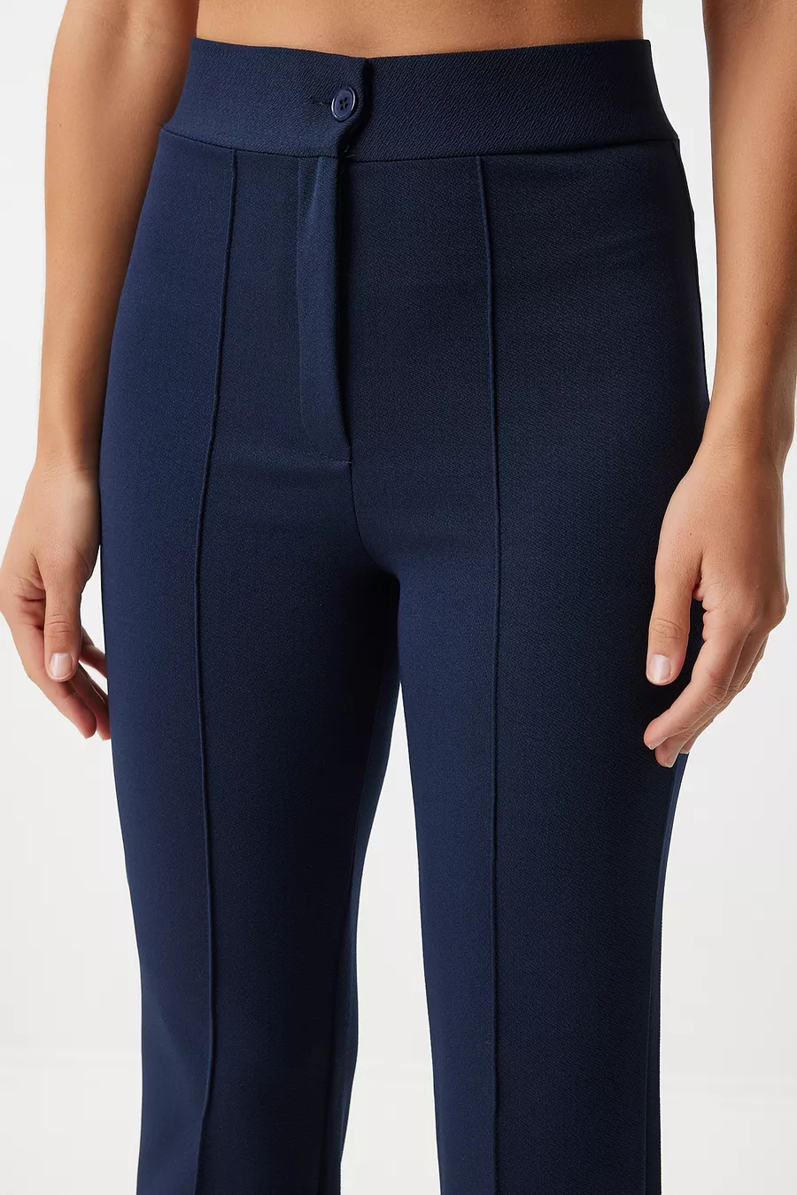 Pantalon en maille extensible taille haute BLEU MARINE