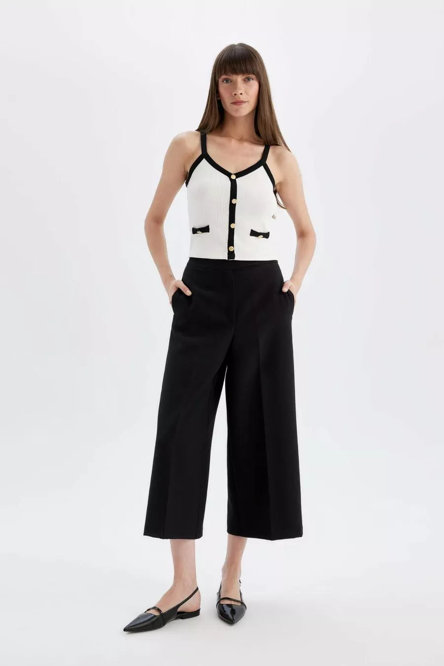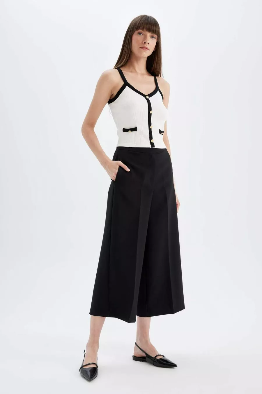 De la taille à la cheville, évasé • Lavable en machine à 30 degrés • L'utilisation d'un agent blanchissant n'est pas recommandée • Le sèche-linge n'est pas recommandé • Repassage à l'envers et à basse température conseillé • Pour des instructions d'entretien détaillées, veuillez vérifier l'étiquette du produit.