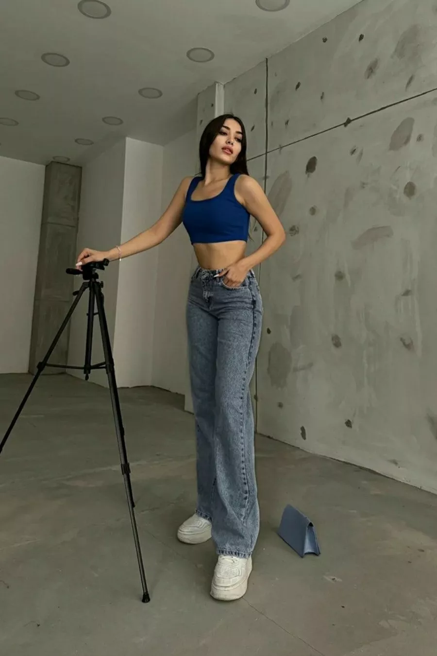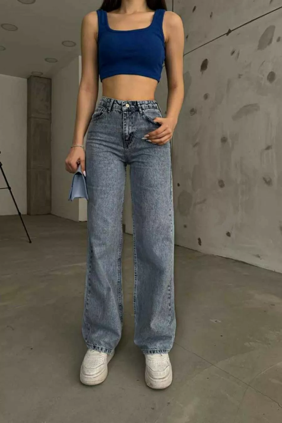 Pantalon en jean pour femme Maybach Power Likralı, taille haute, fendu sur le côté, coupe ample, style décontracté