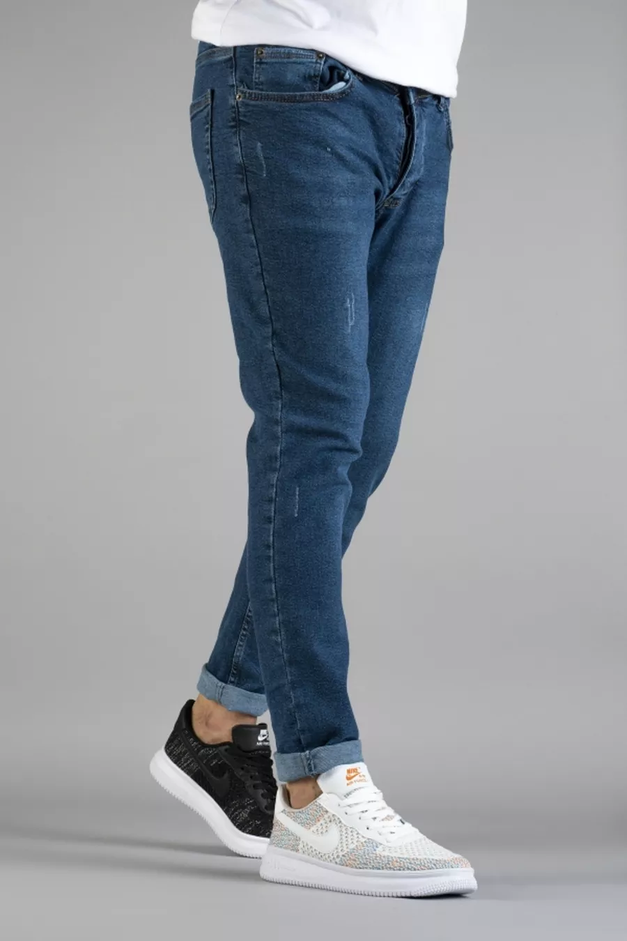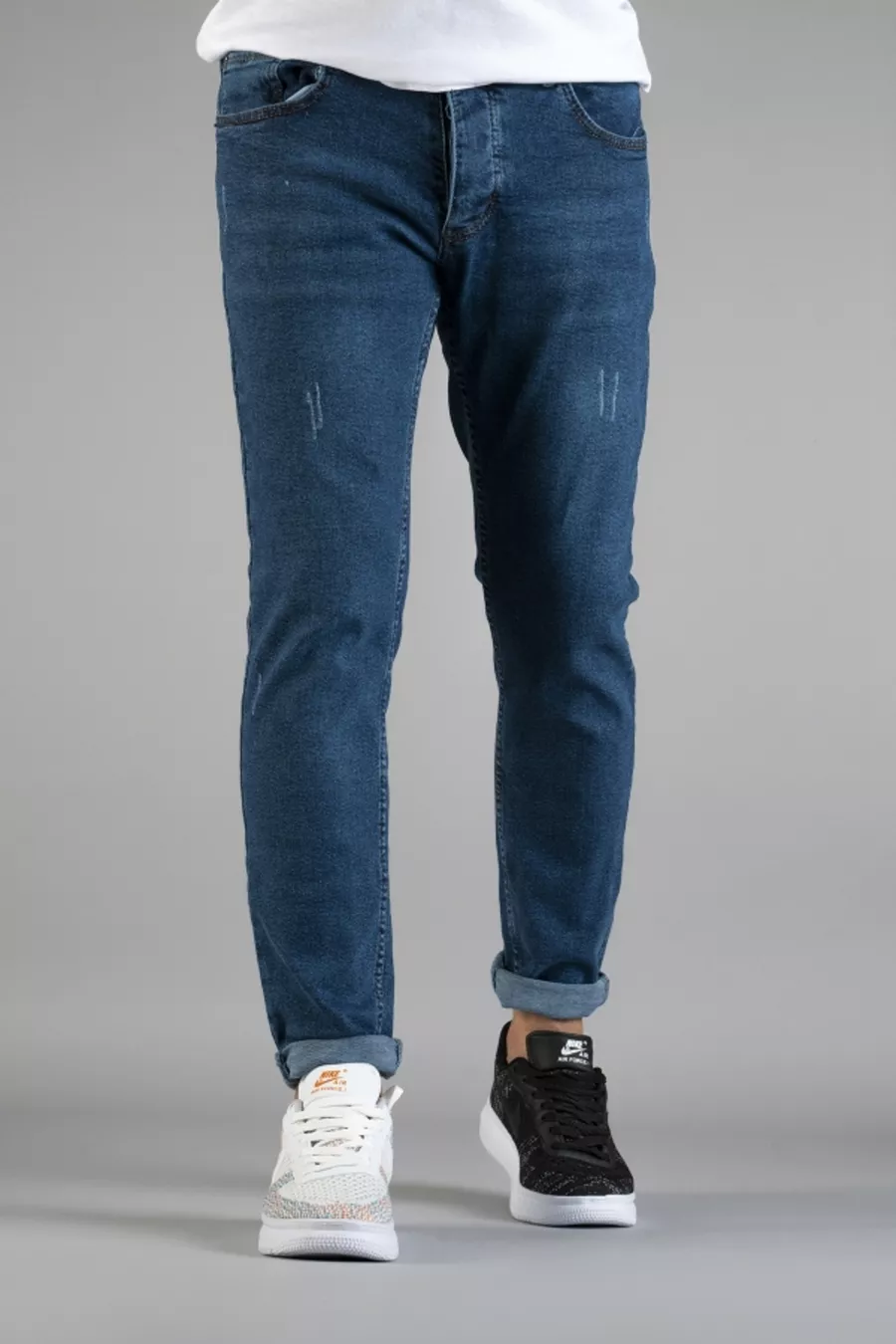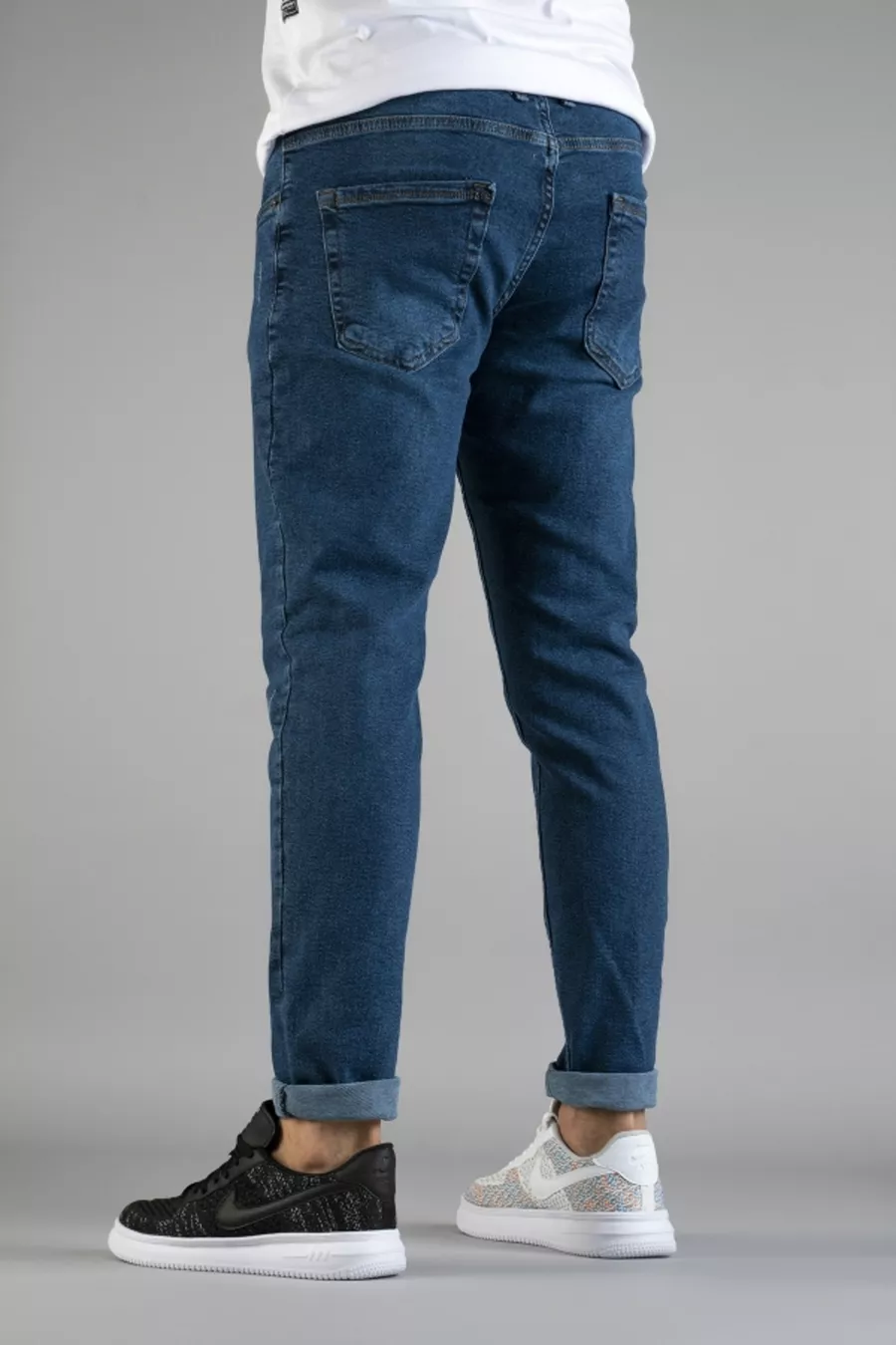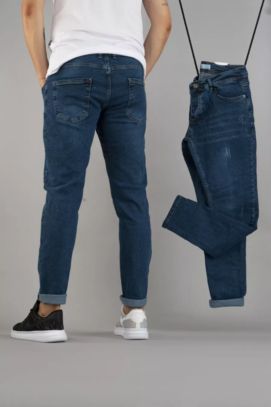 Pantalon Jean Slim Fit Homme Bleu à Coupe Étroite avec Détail Rivets