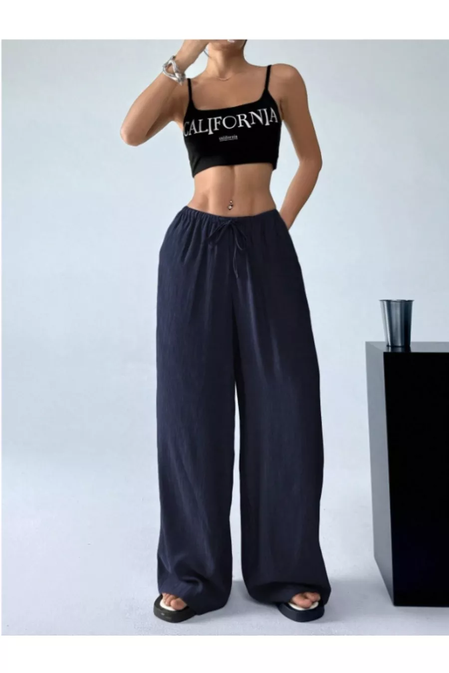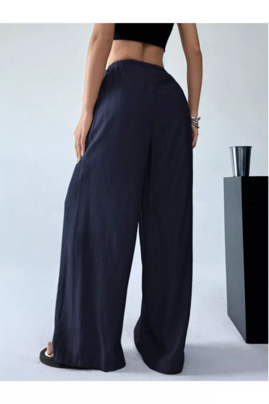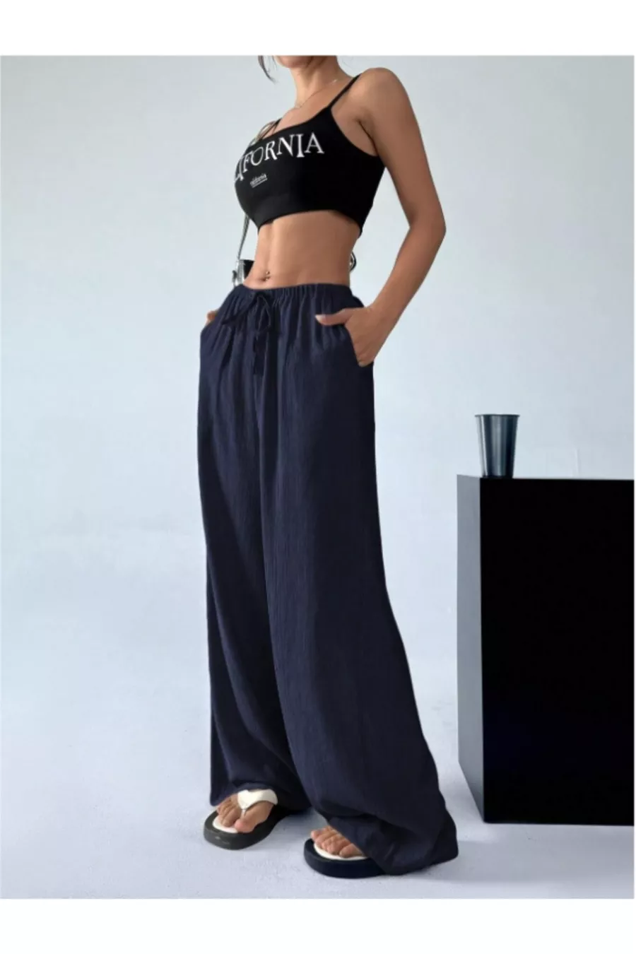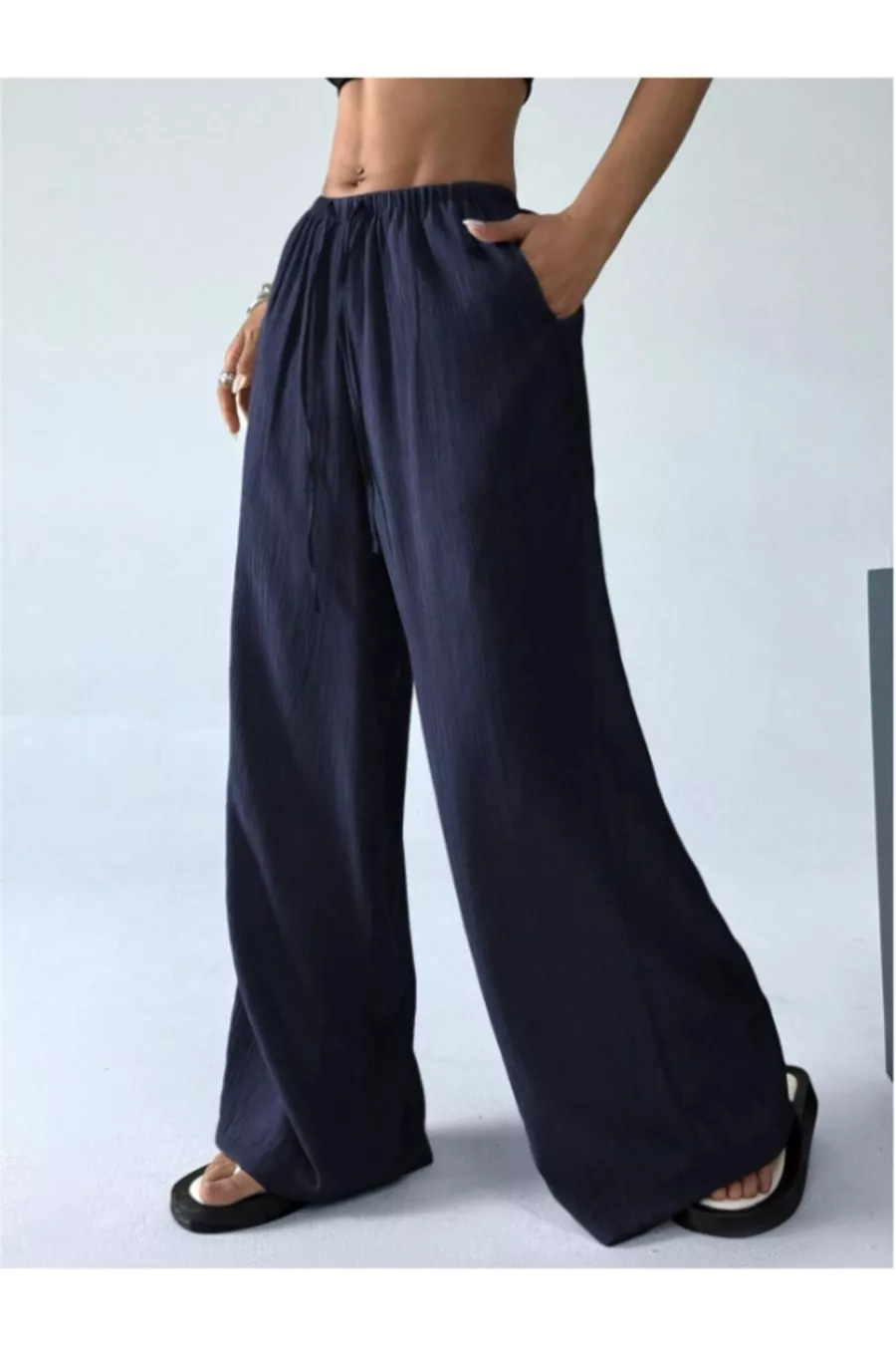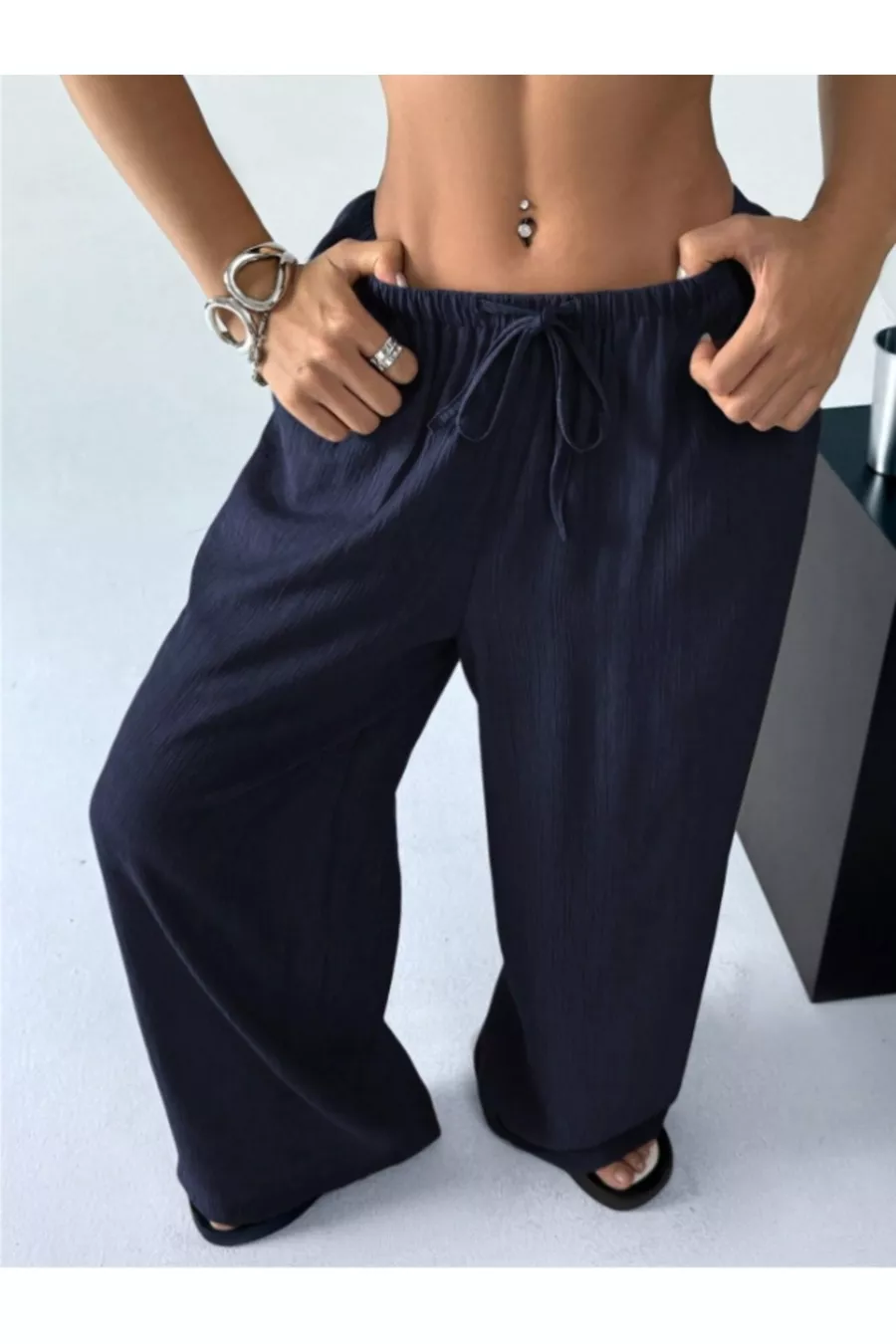 Pantalon large en tissu Bürümcük pour femme avec ceinture à nouer