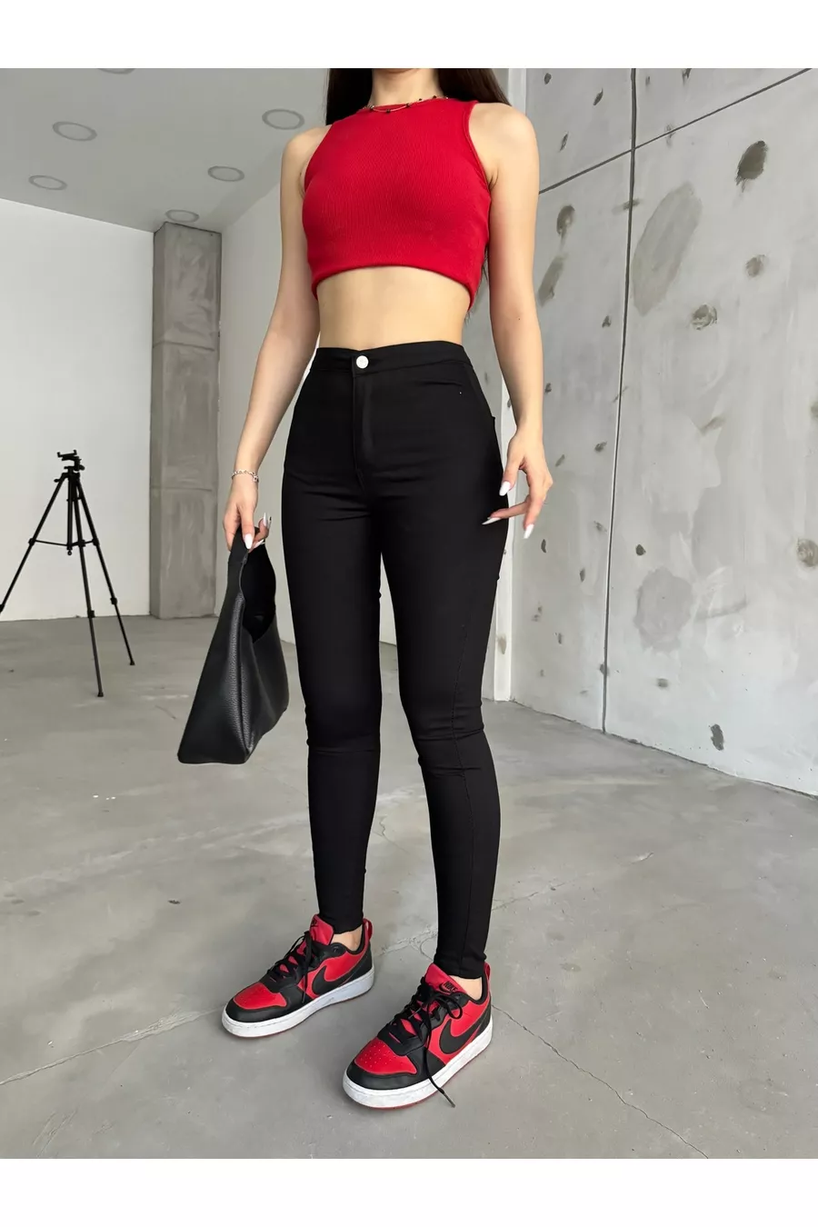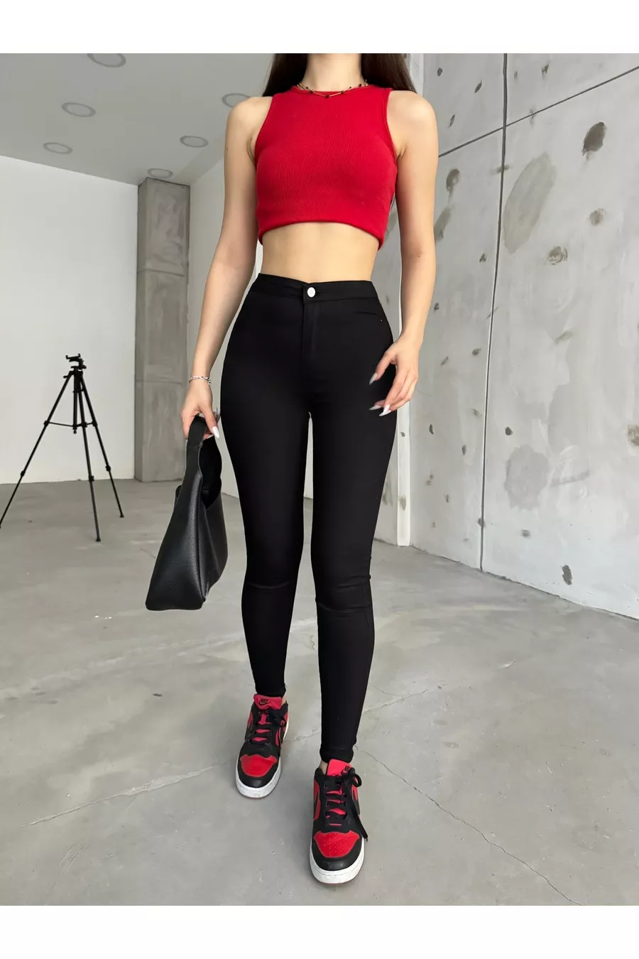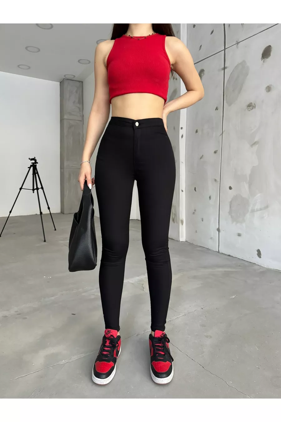 Pantalon legging noir en lycra pour femme