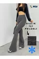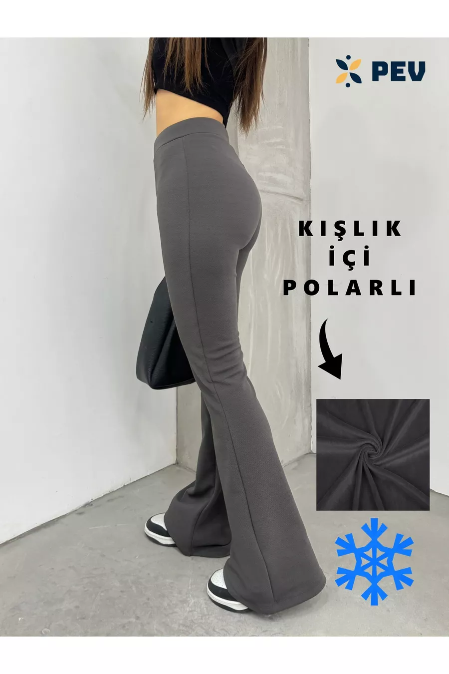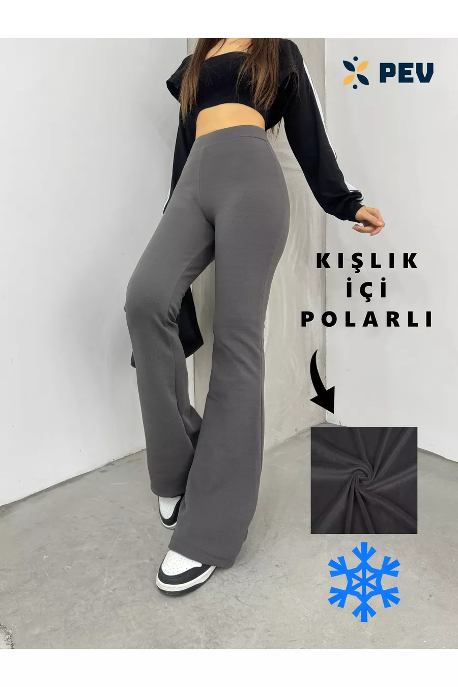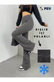 Pantalon legging femme taille haute en tissu stretch fumé, gainant, doublé polaire, à effet peluche, style pattes d'eph pour l'hiver