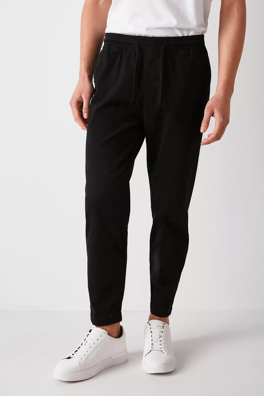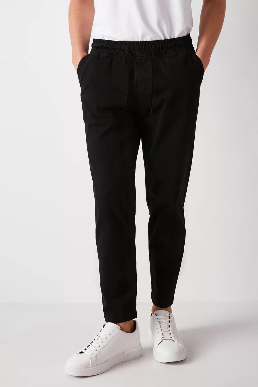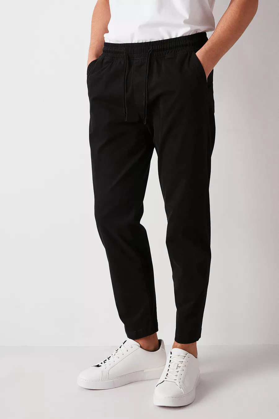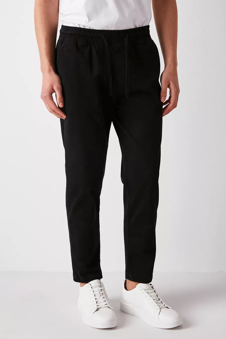 Pantalon noir pour homme Reese, taille élastique, coupe confortable, tissu en coton élastane tissé lavable