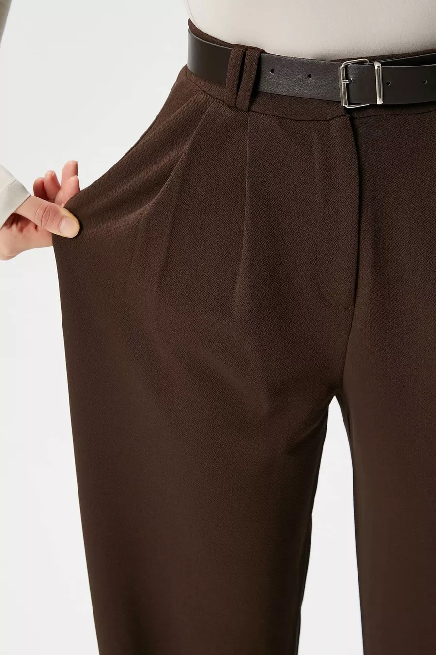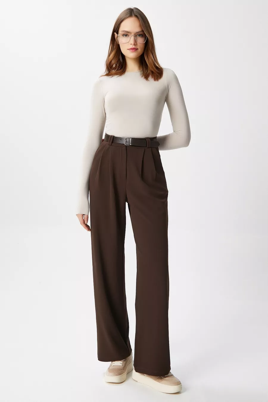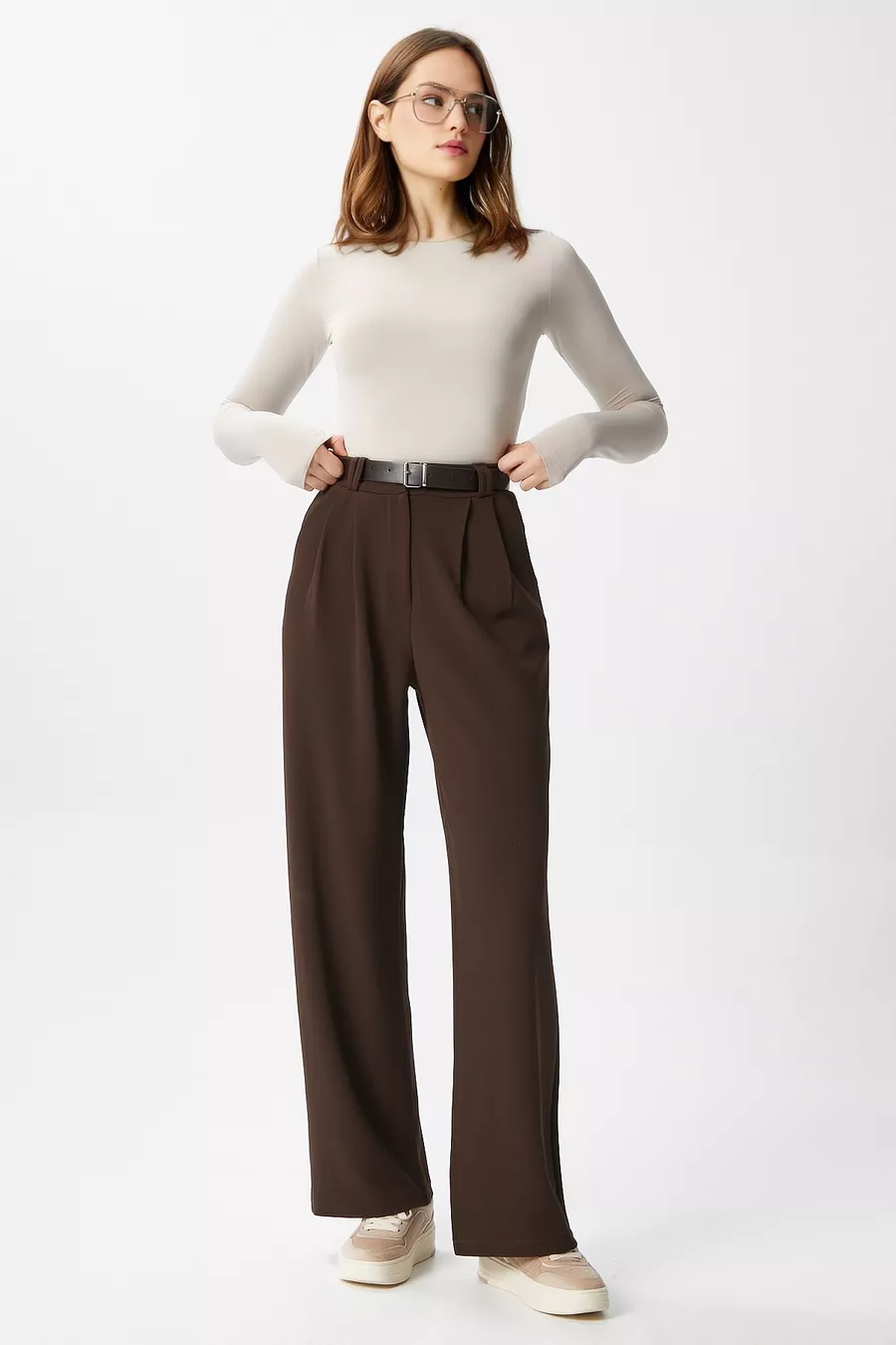 Pantalon Palazzo marron stretch pour femme Rena à ceinture