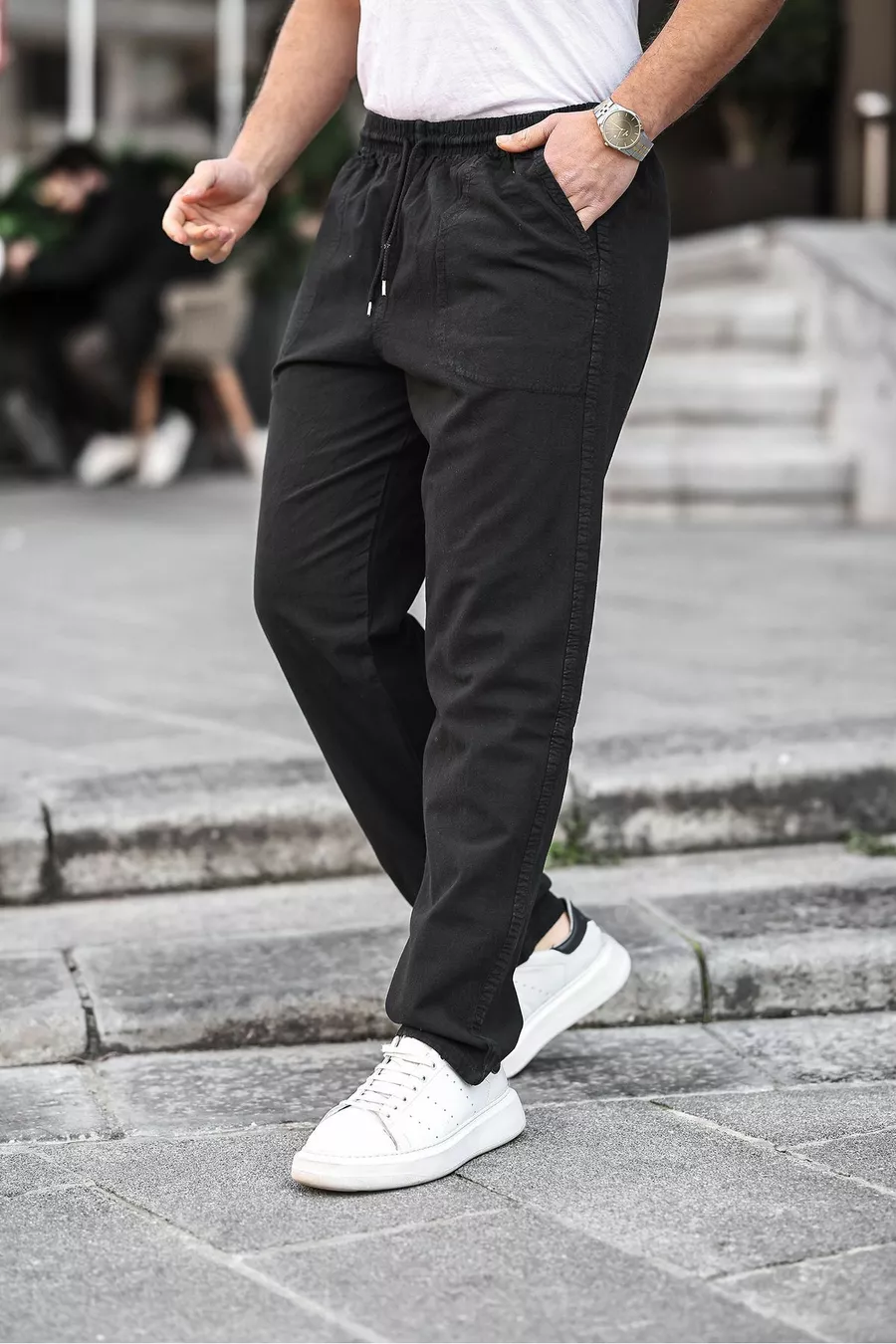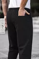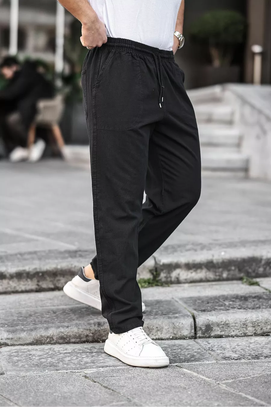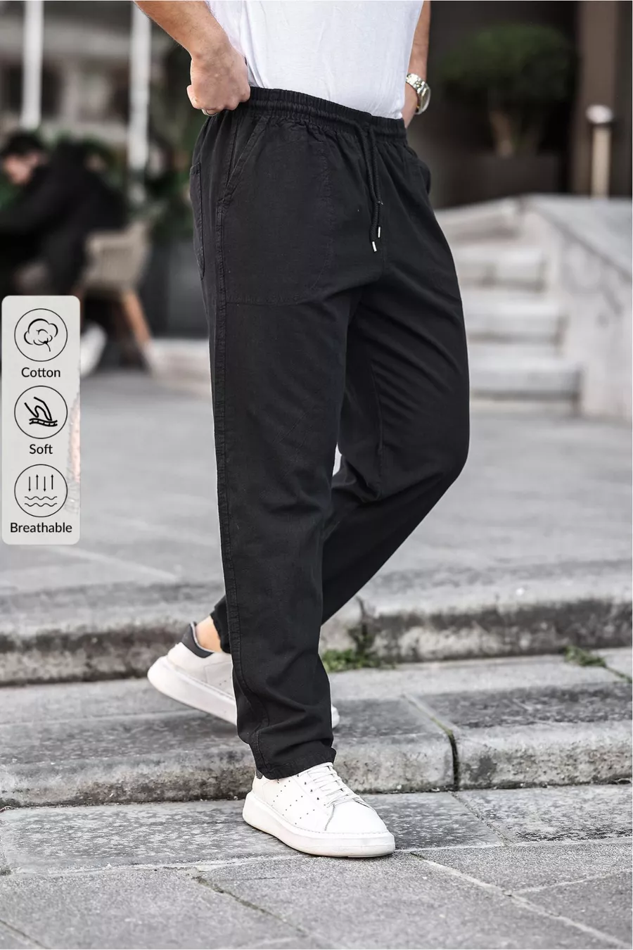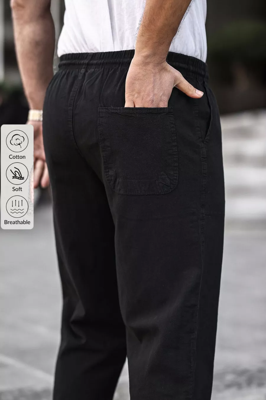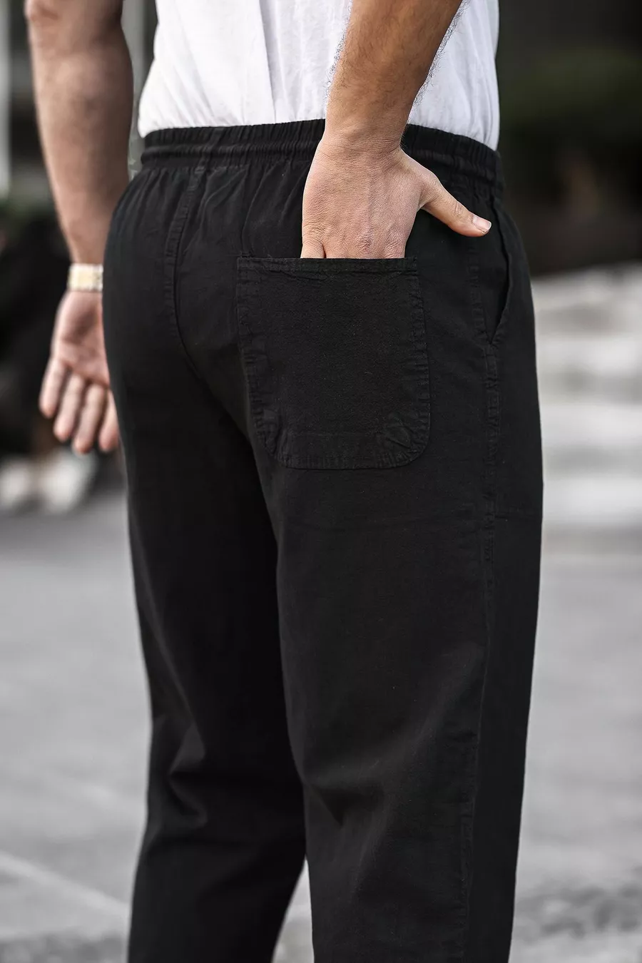 Pantalon relax en mélange de lin pour hommes, couleur noire - NOIR