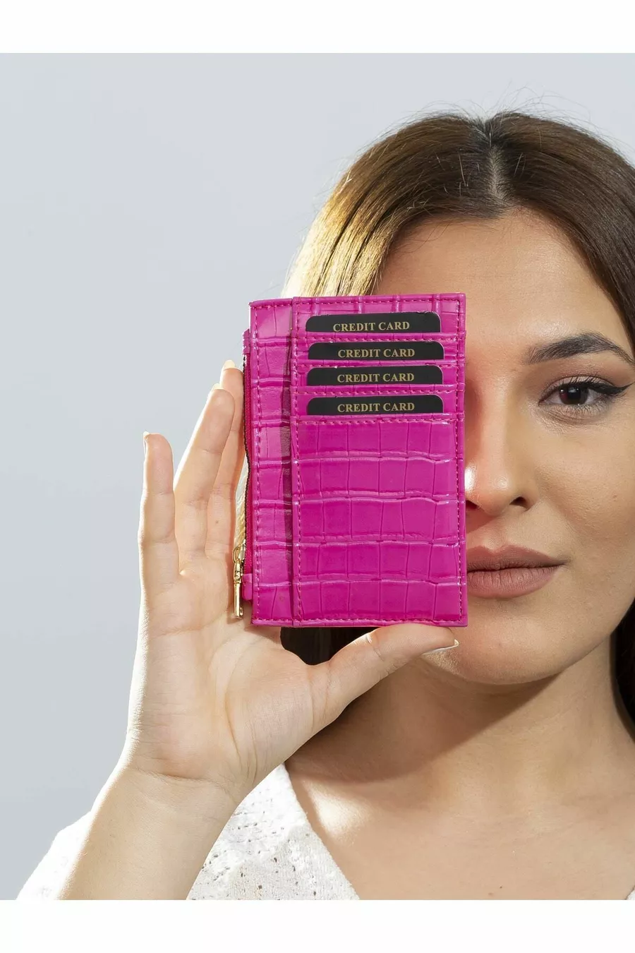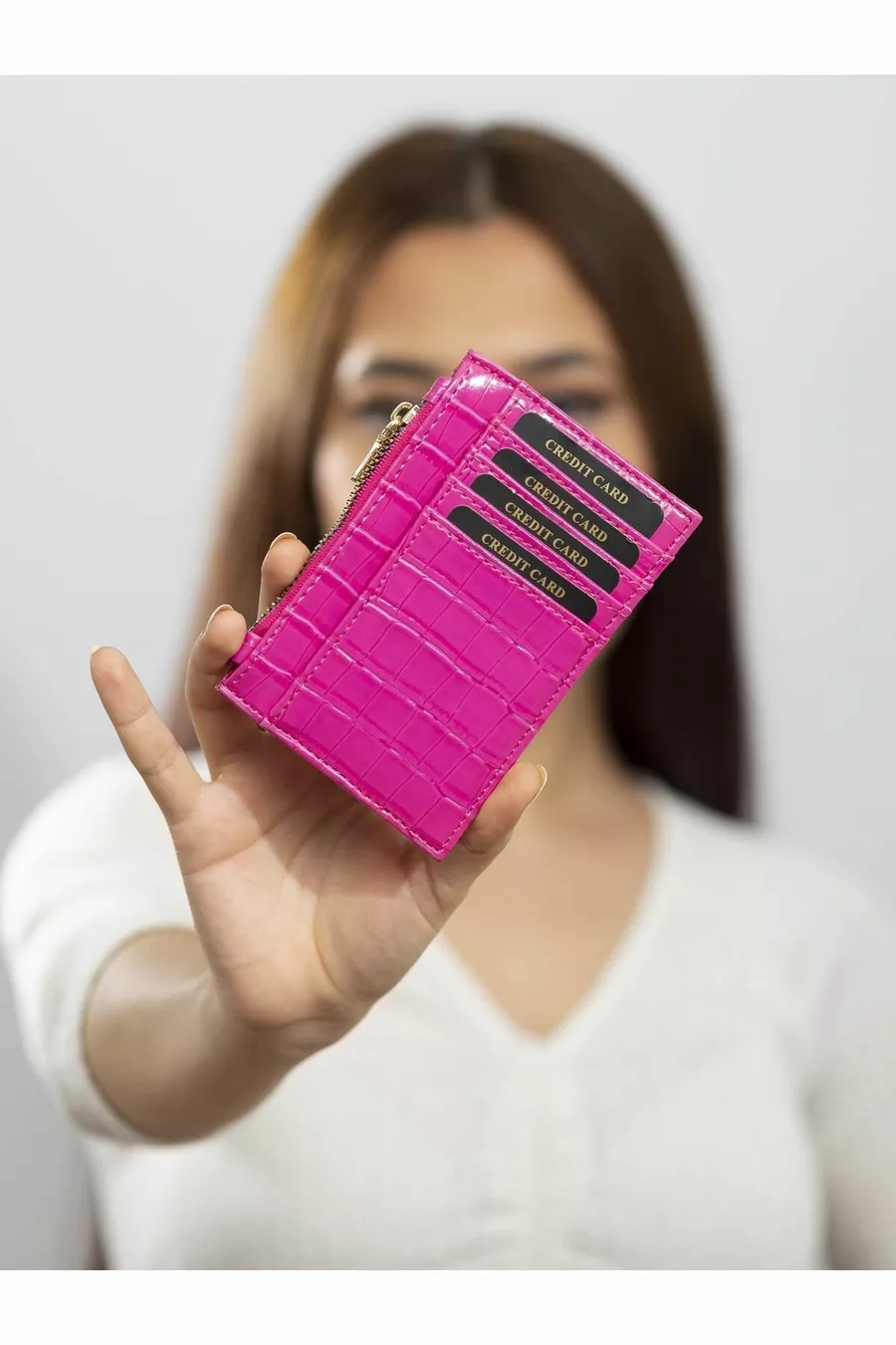Paris Portefeuille porte-cartes zippé fuchsia pour femme