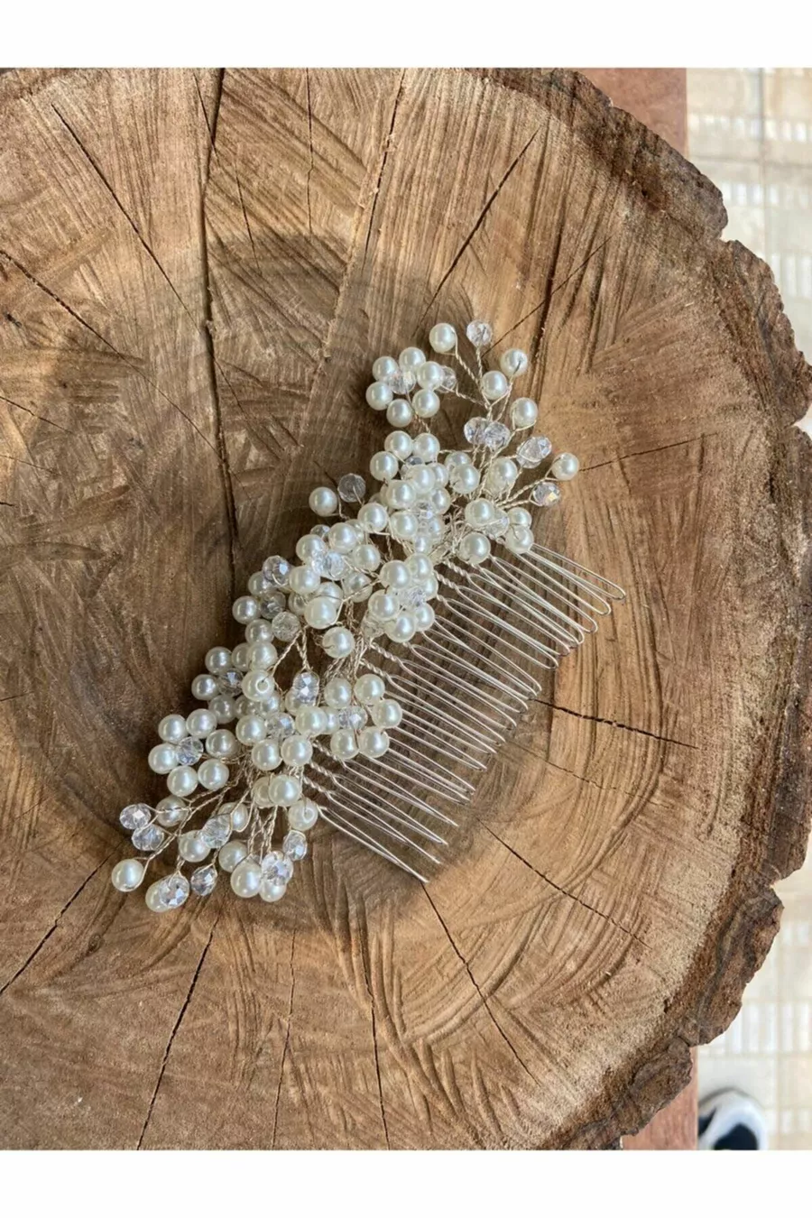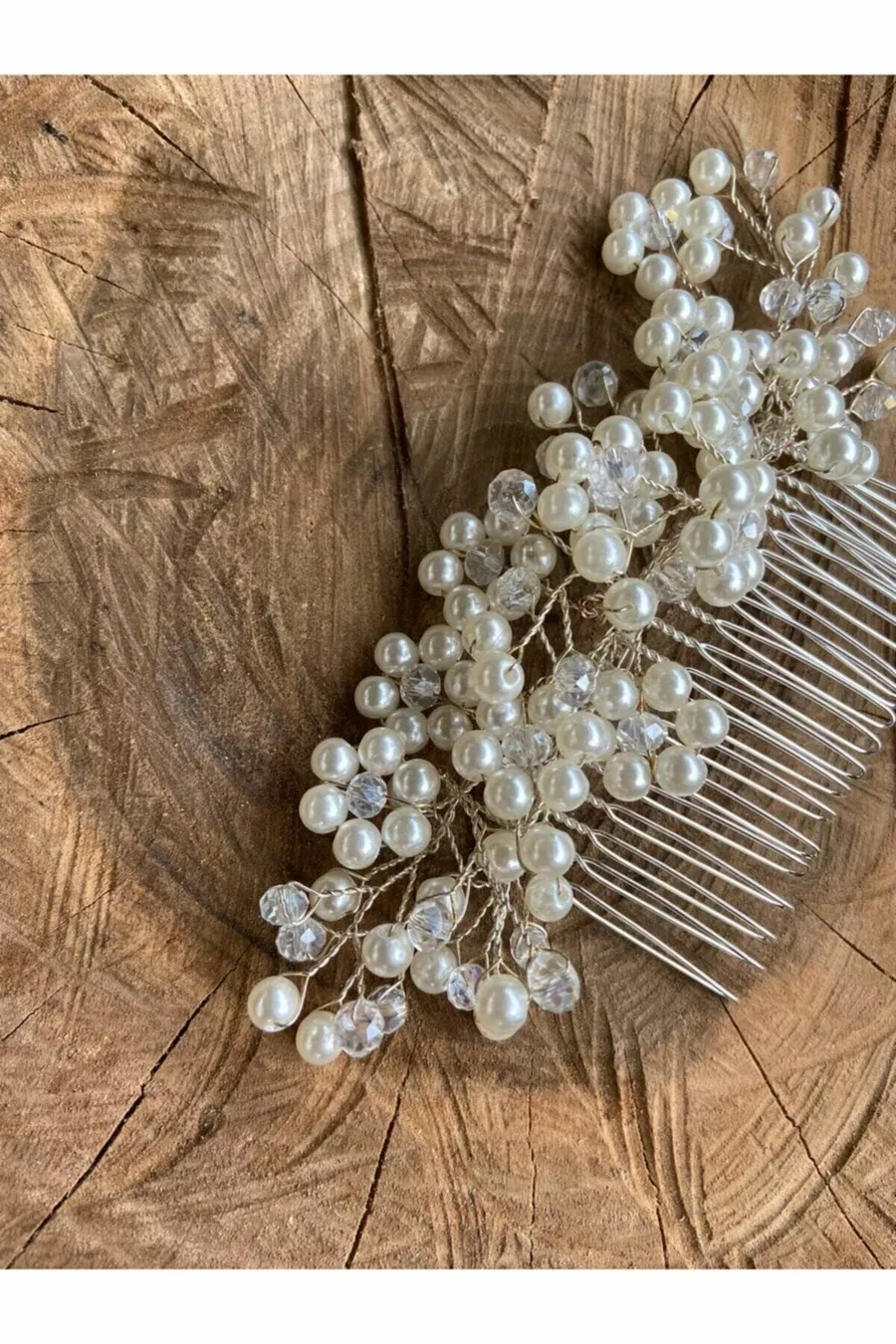 Peigne Accessoire de Cheveux pour Mariée en Cristal et Perle pour Fiançailles, Mariage et Soirées