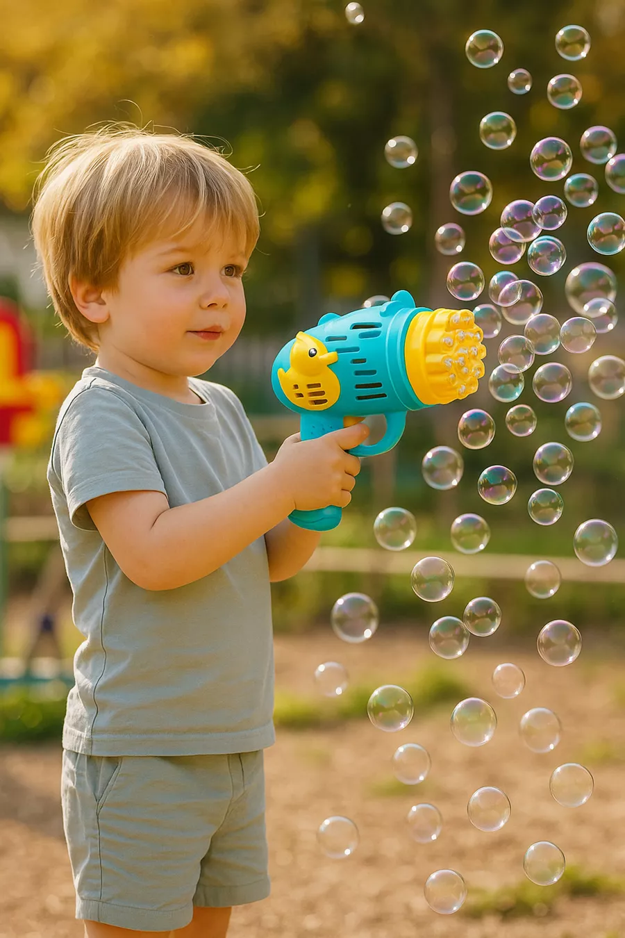 Pistolet jouet à bulles en mousse à piles Duck avec de nombreux trous, souhaité