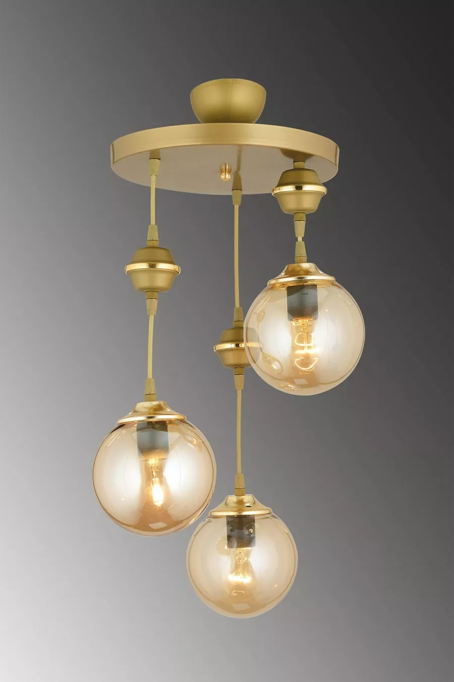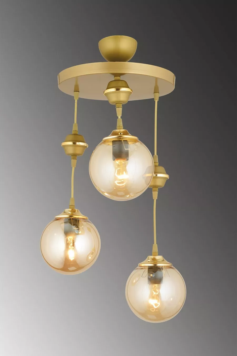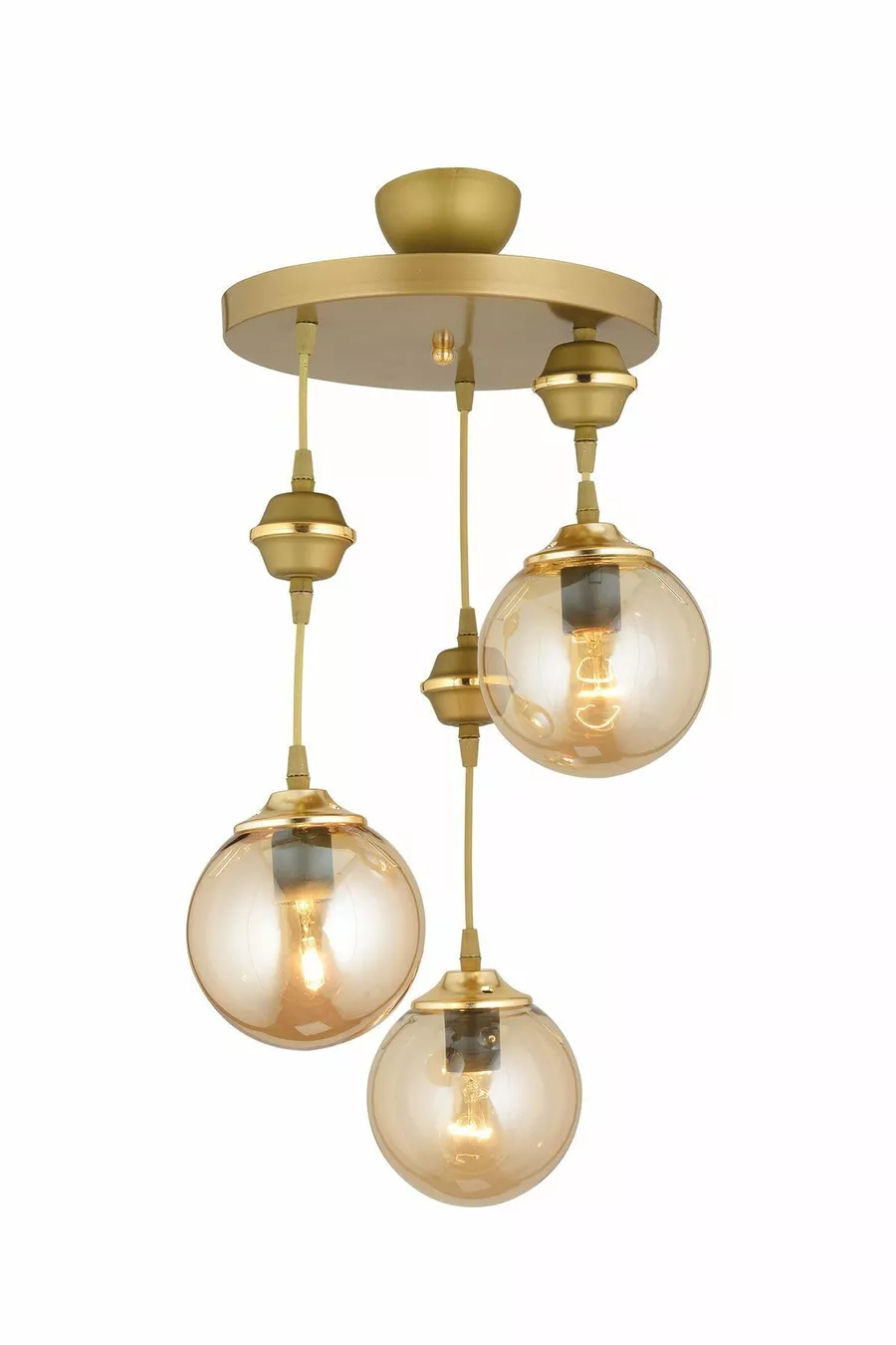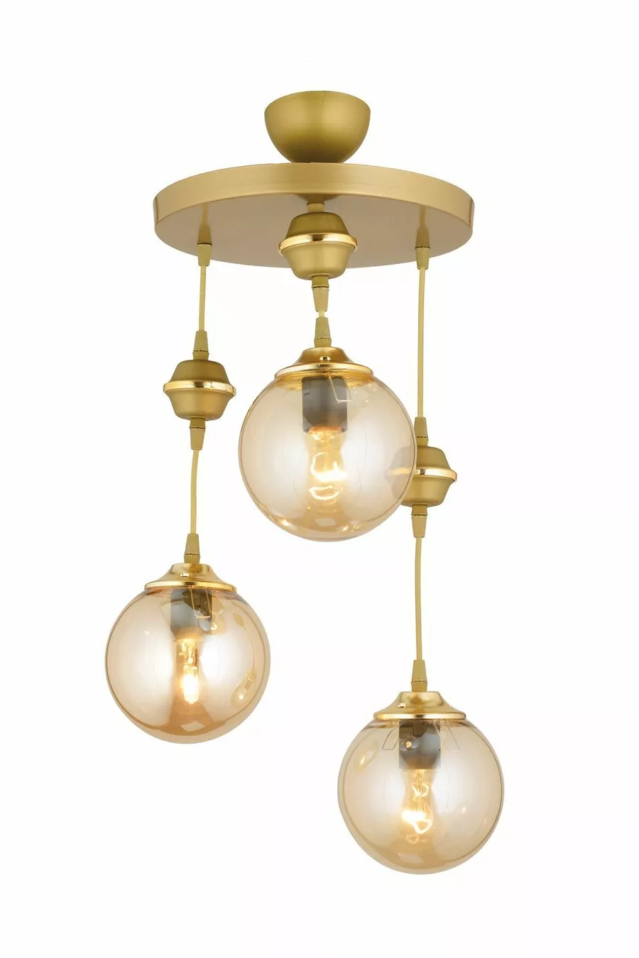 Plafonnier de luxe suspendu avec plateau en applique patiné, set de 3 globes en verre à miel orientés vers le bas