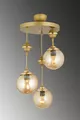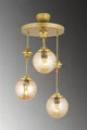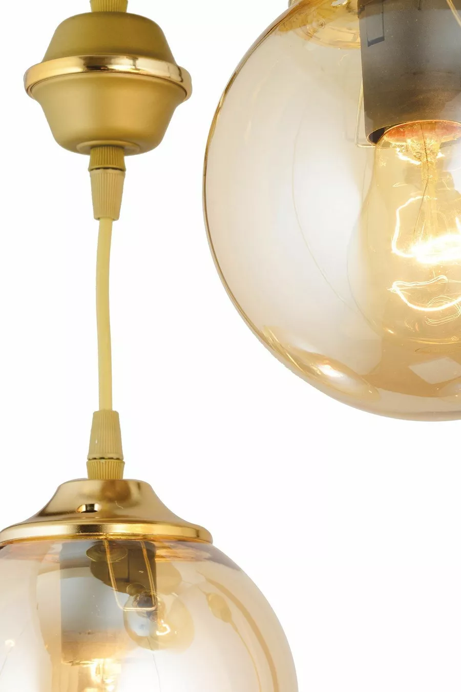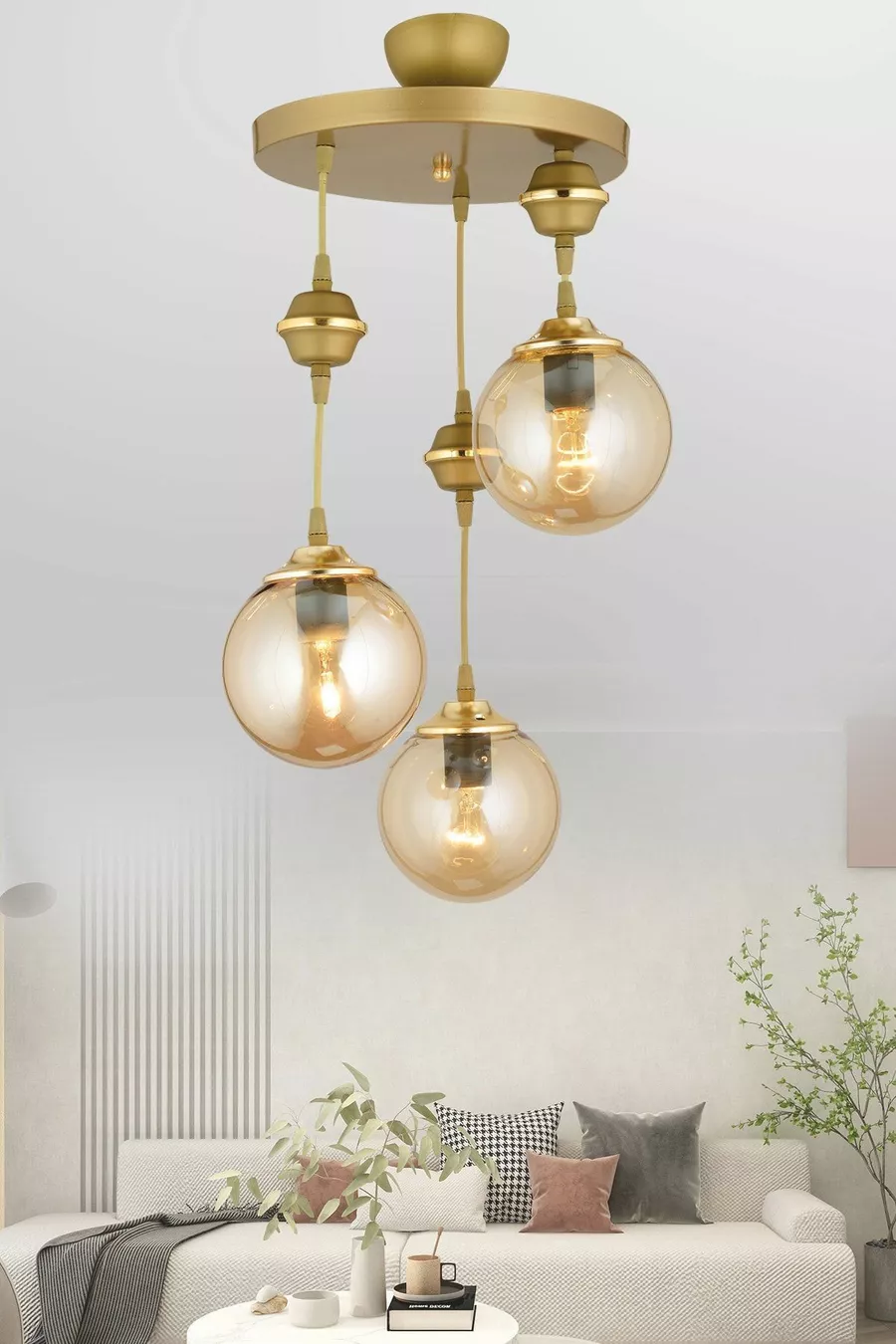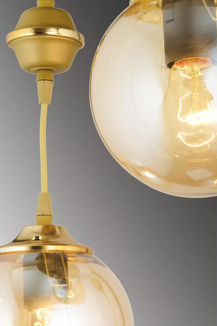Plafonnier de luxe suspendu avec plateau en applique patiné, set de 3 globes en verre à miel orientés vers le bas