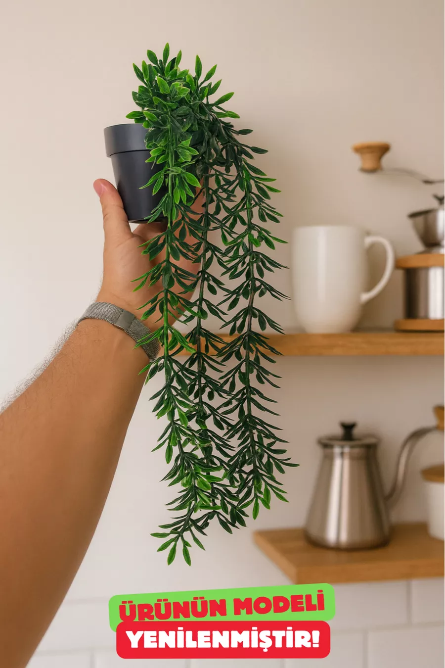Plante artificielle suspendue en basilic vert à 4 branches dans un pot noir, décoration florale pour coin café Cm