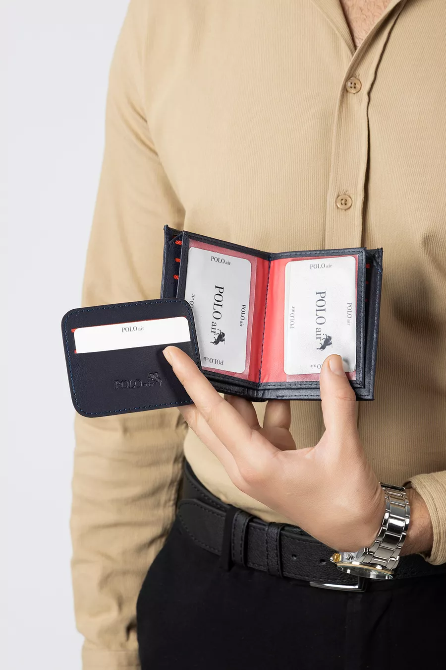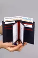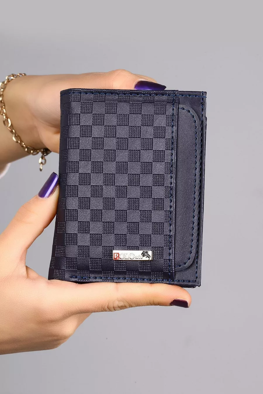 Portefeuille et porte-cartes pour homme à motif damier bleu marine
