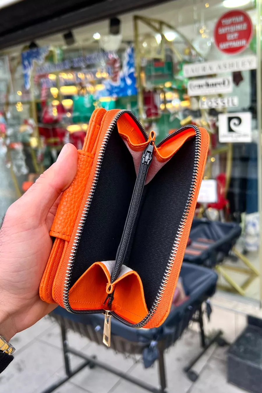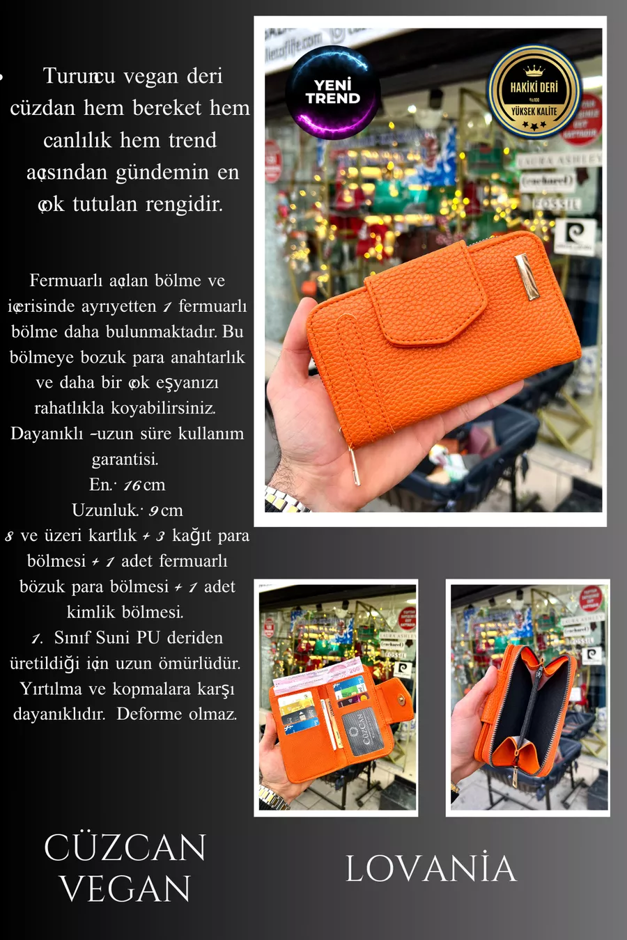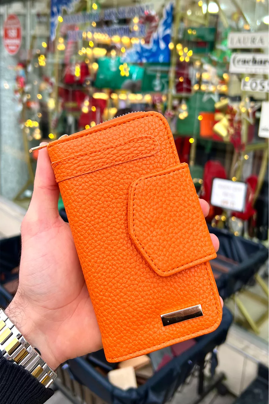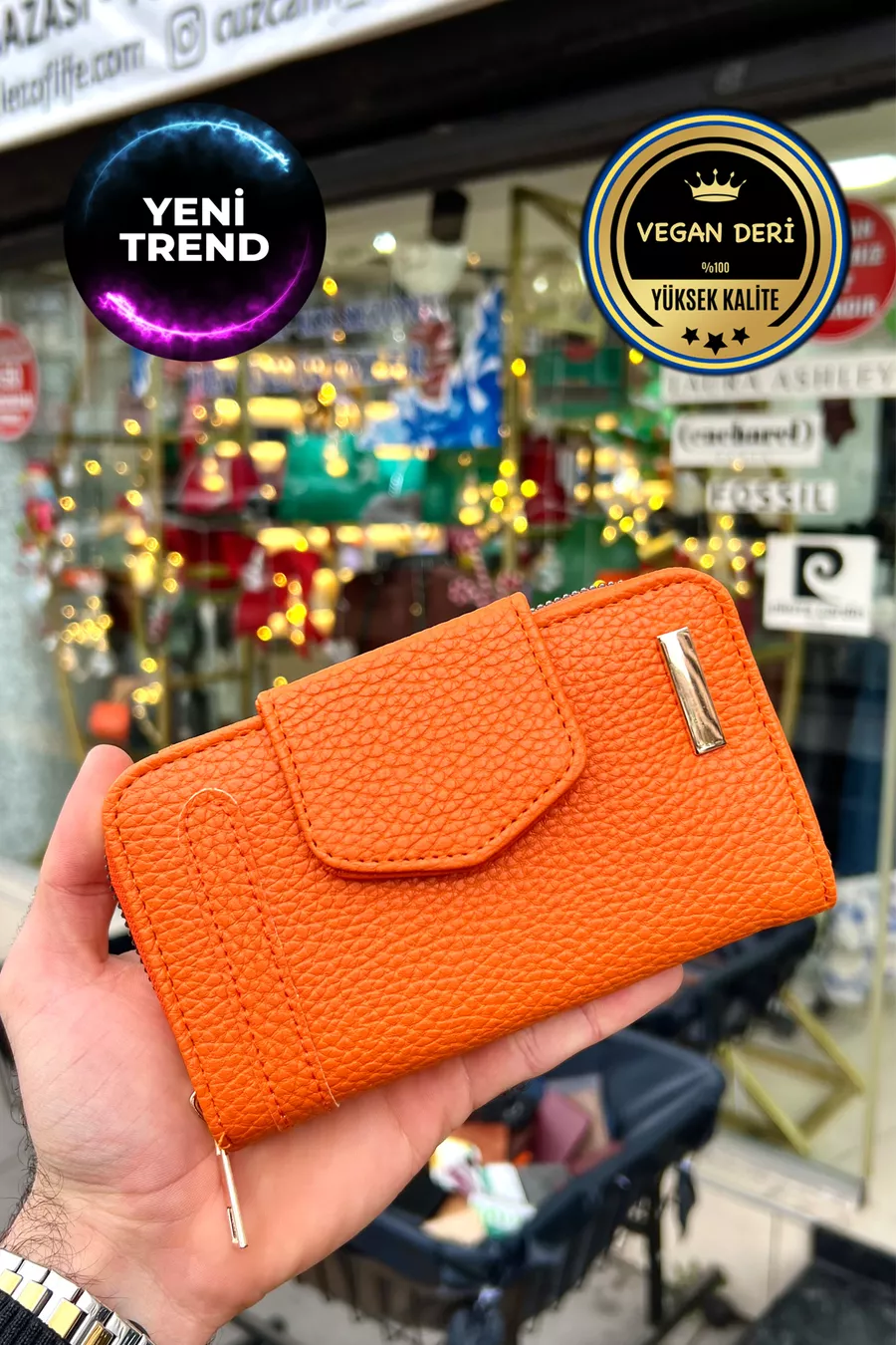 Portefeuille pour femme en cuir végétalien Lavinia Turuncu avec fermeture éclair et aimant (Cadeau de la Fête des Mères)