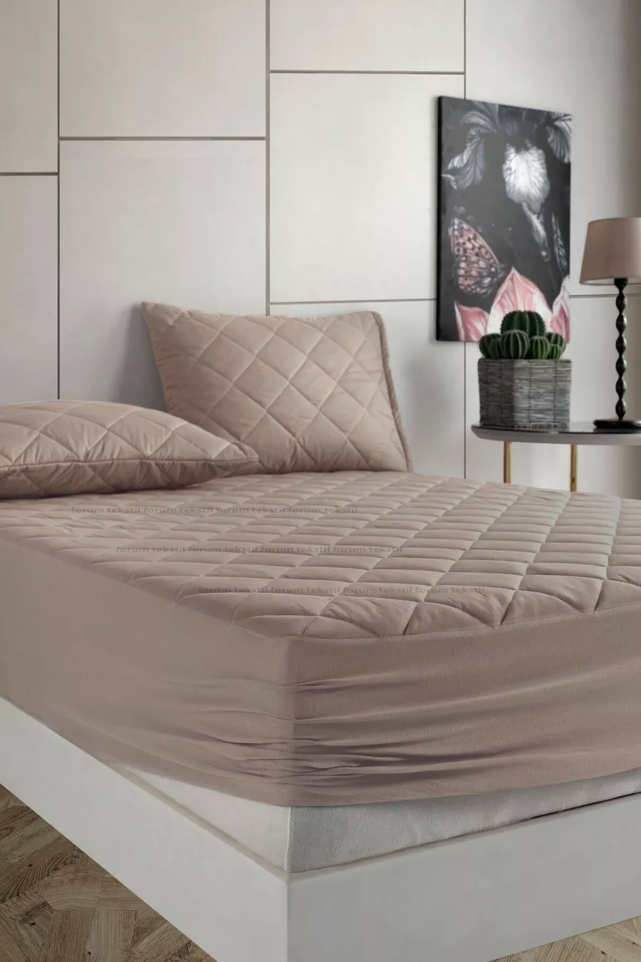 Protège-matelas en coton matelassé Pamukkale Alez Set Marron % coton - 2 Protège-oreillers ( tailles)