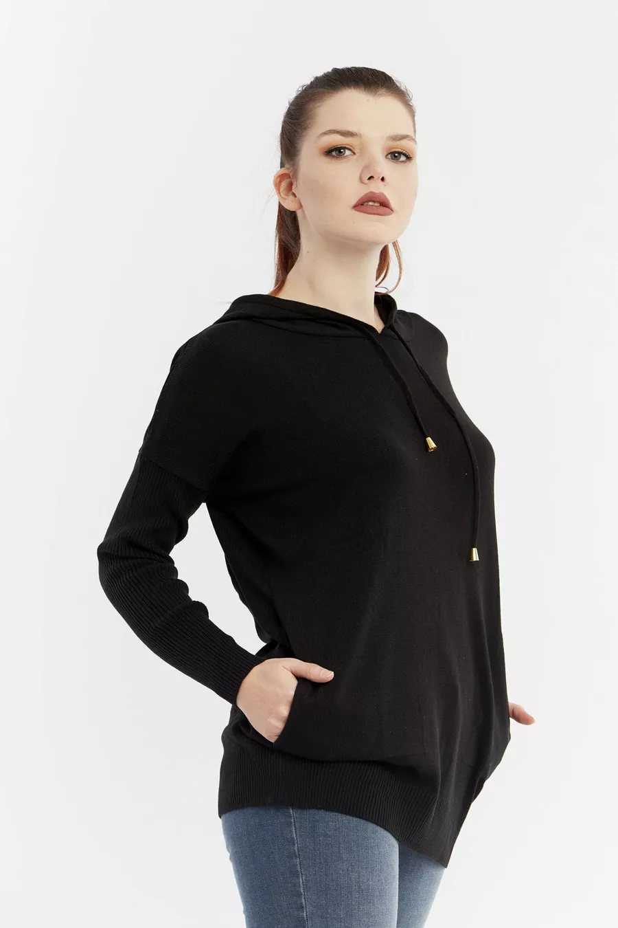 Pull à capuche noir pour femme