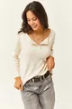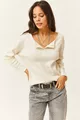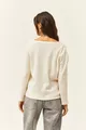 Pull ample en tricot gratté écru pour femme avec boutons