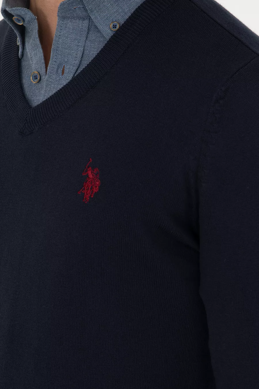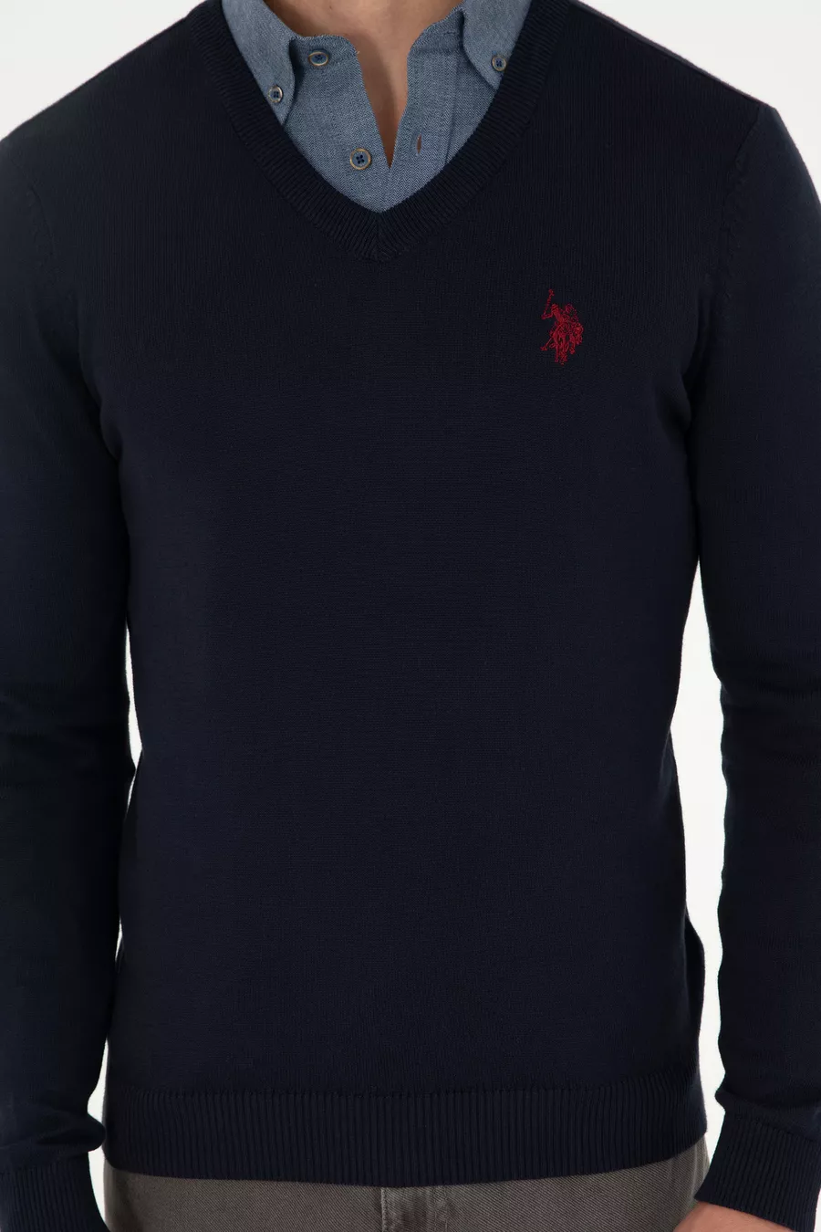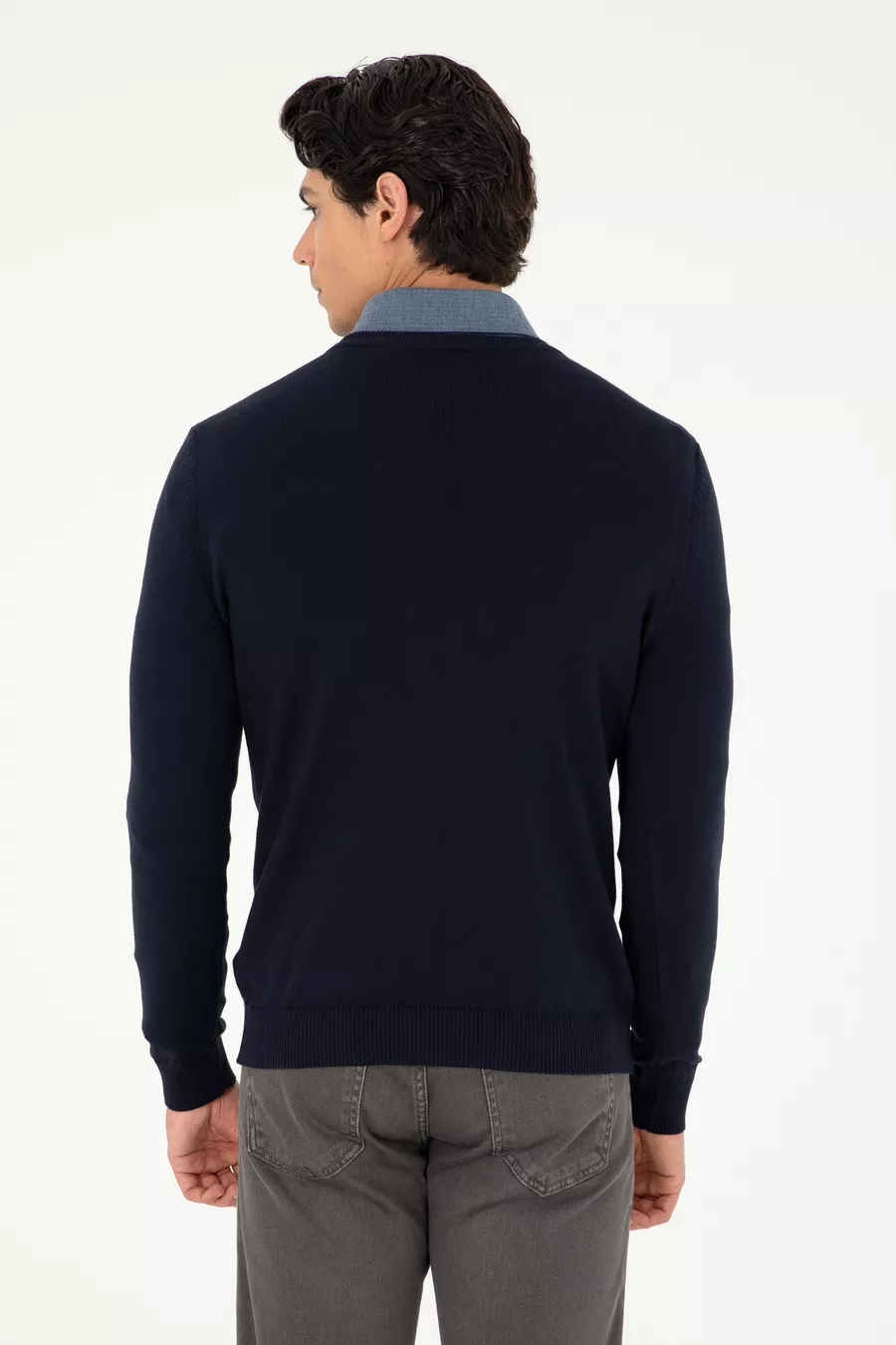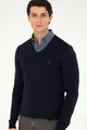 Pull basique bleu marine pour homme, col en V, coupe slim