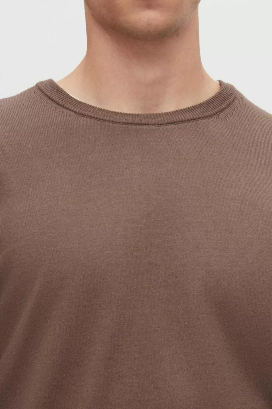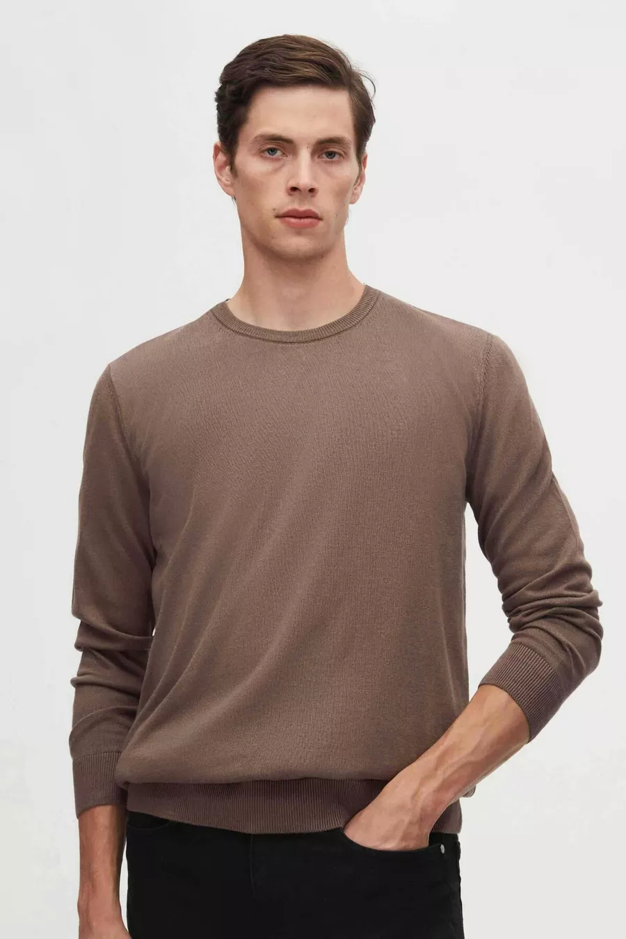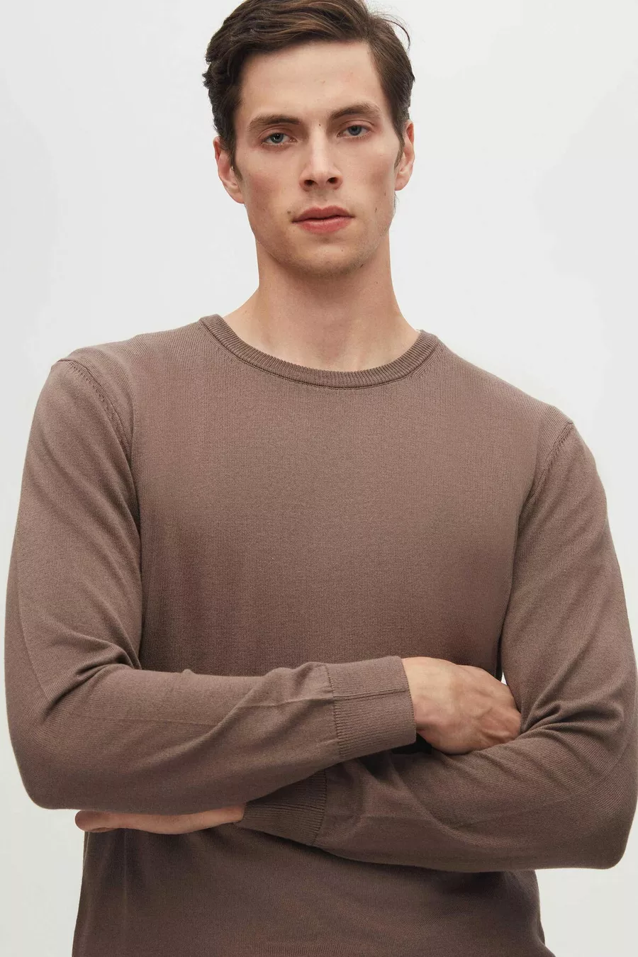Pull en tricot col ras-du-cou pour homme Ds Damat, coupe régulière, couleur vison, ne bouloche pas