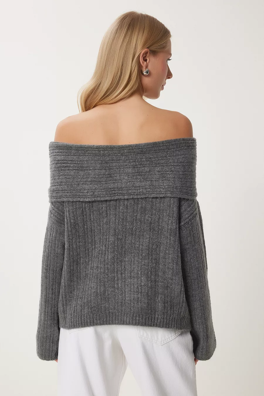 Pull en tricot femme col Madonna anthracite