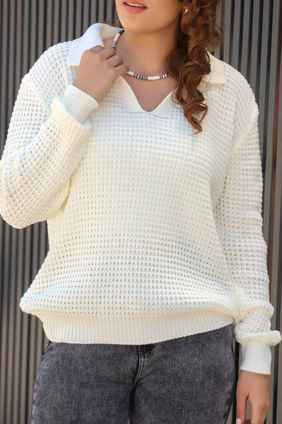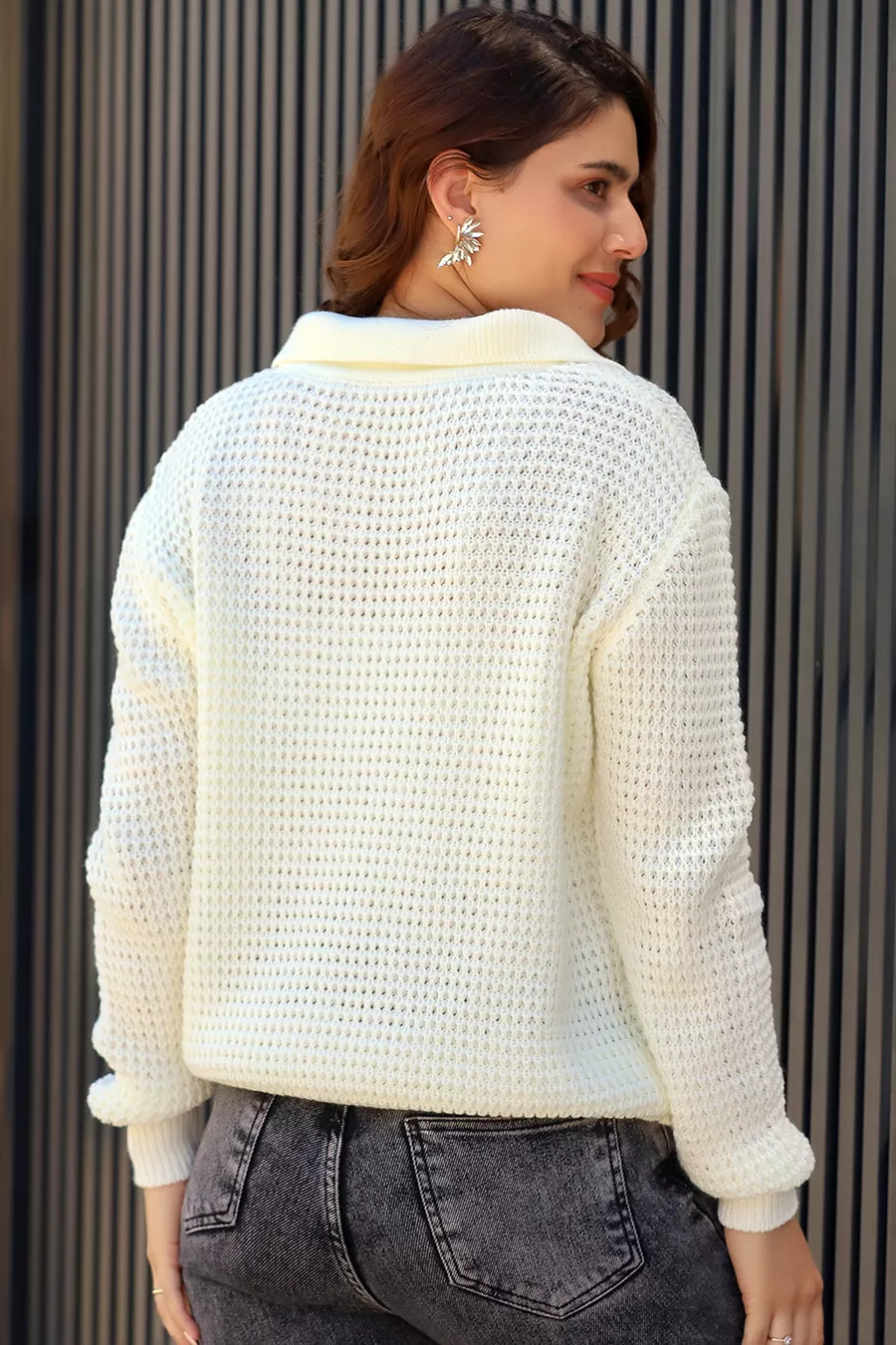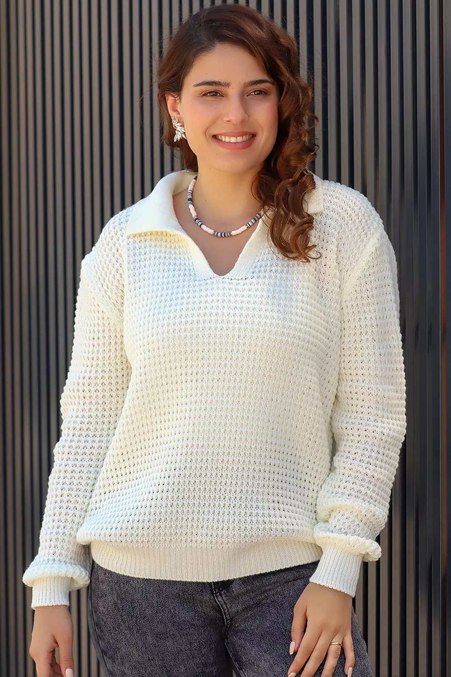Pull en tricot épais à col polo en maille torsadée, manches longues, coupe décontractée, hiver