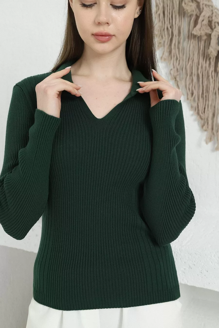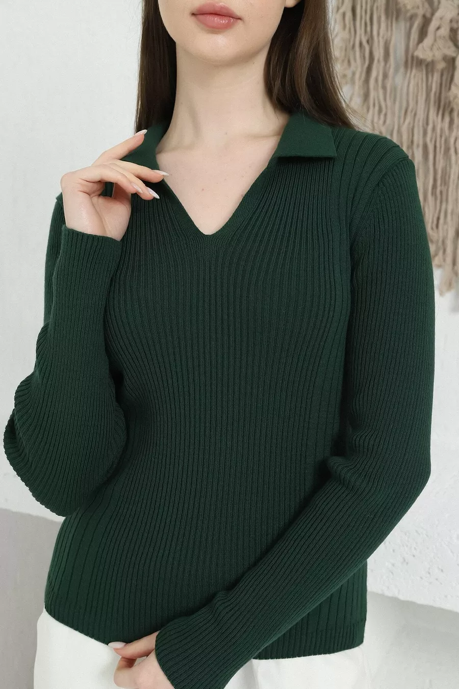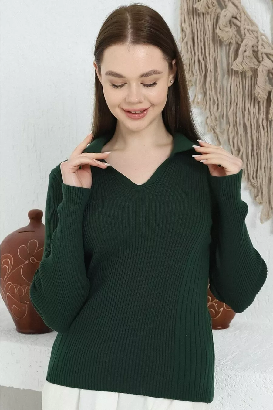Pull en tricot pour femme Zümrüt Polo col V