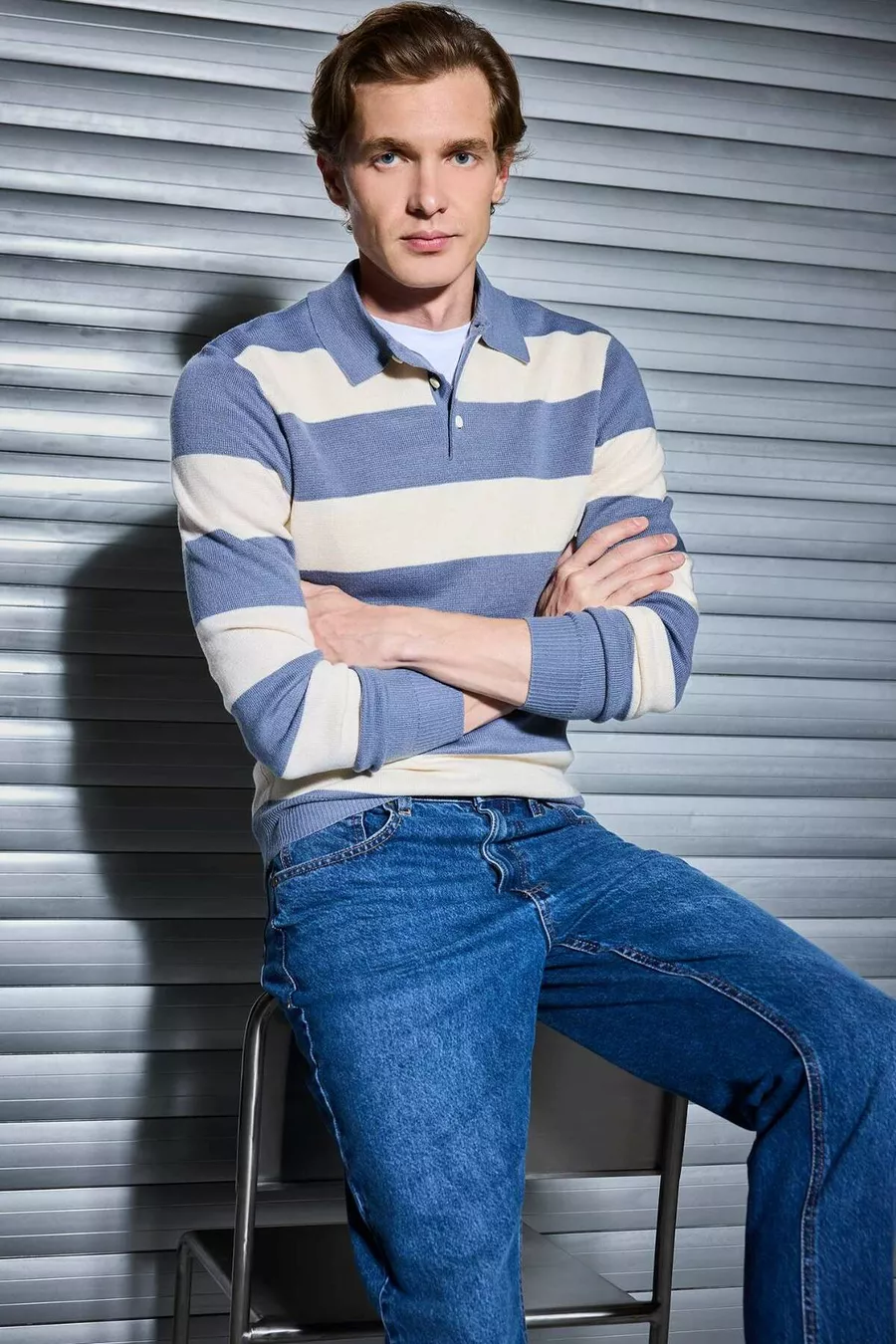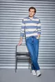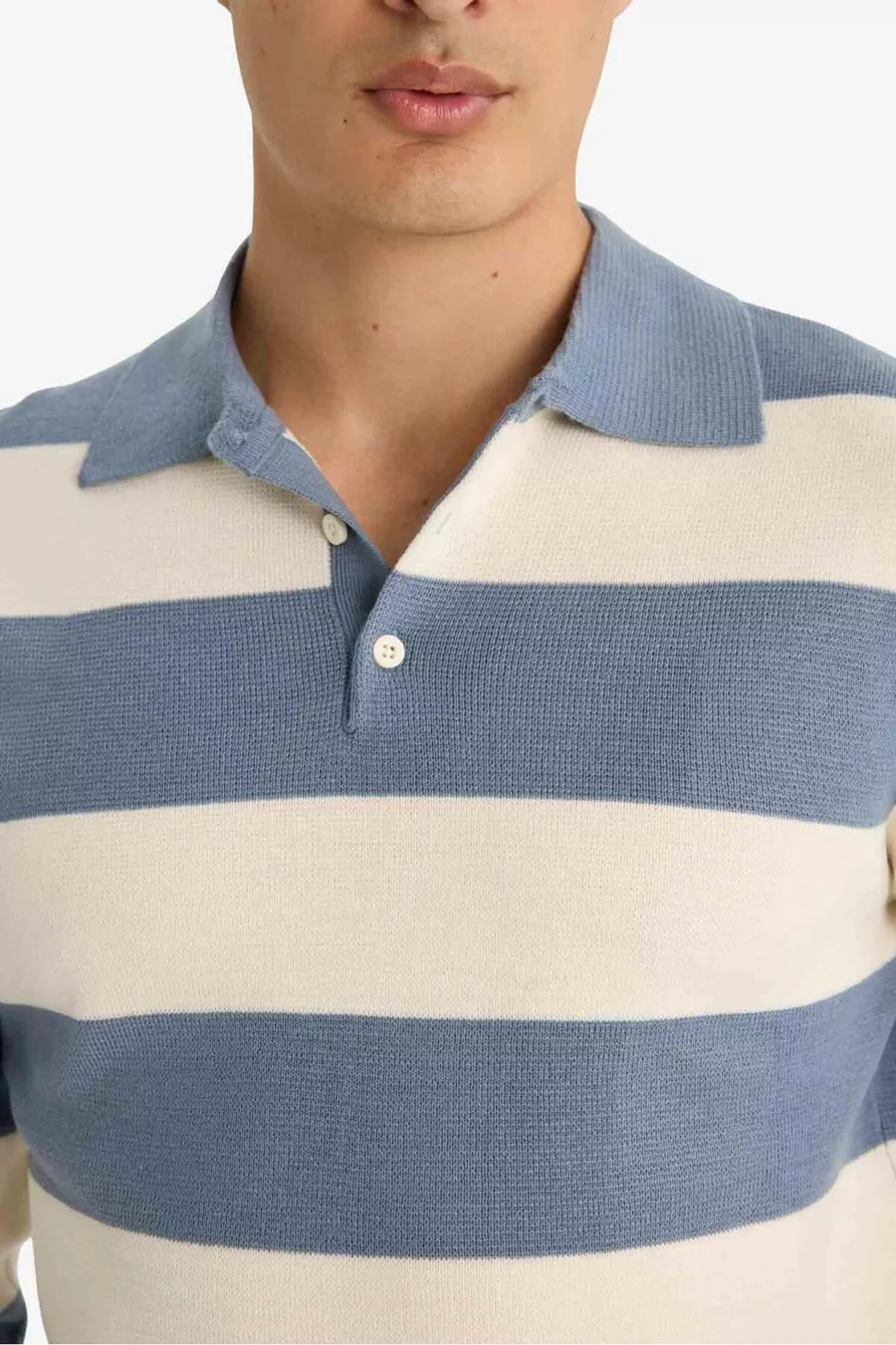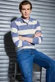 Pull en tricot à col polo rayé coupe normale standard WN