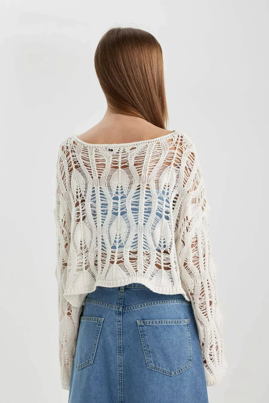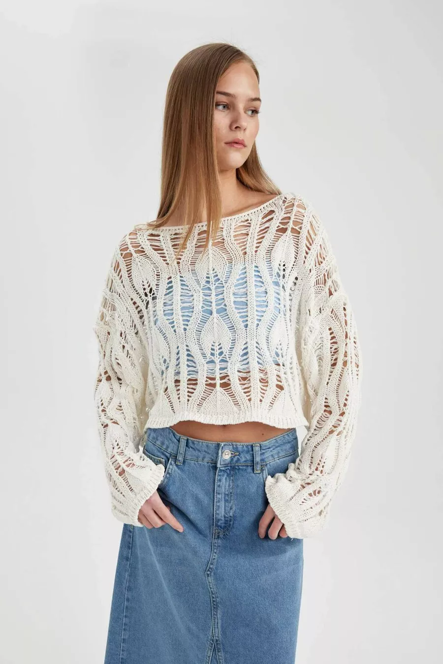 Pull en tricot crocheté à épaules dénudées Coool Relax Fit SP