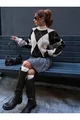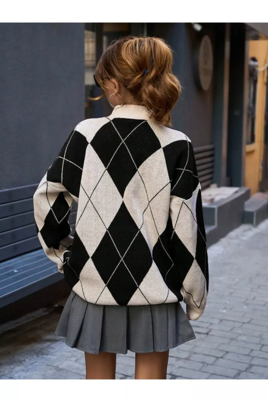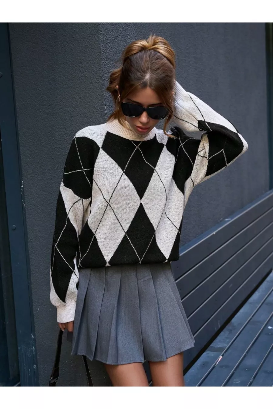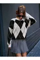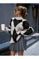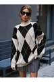 Pull en tricot noir à col montant pour femme avec motif baklava