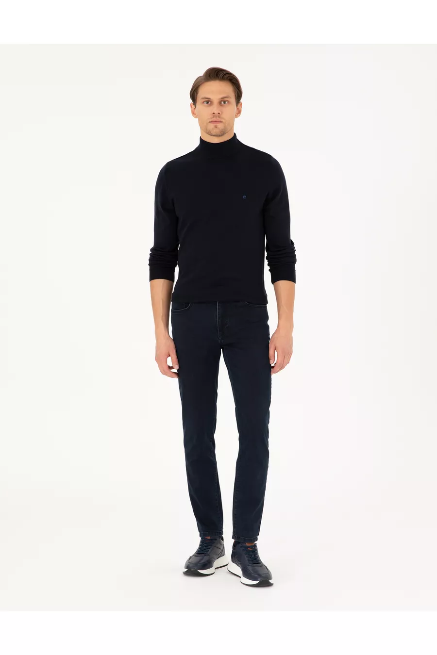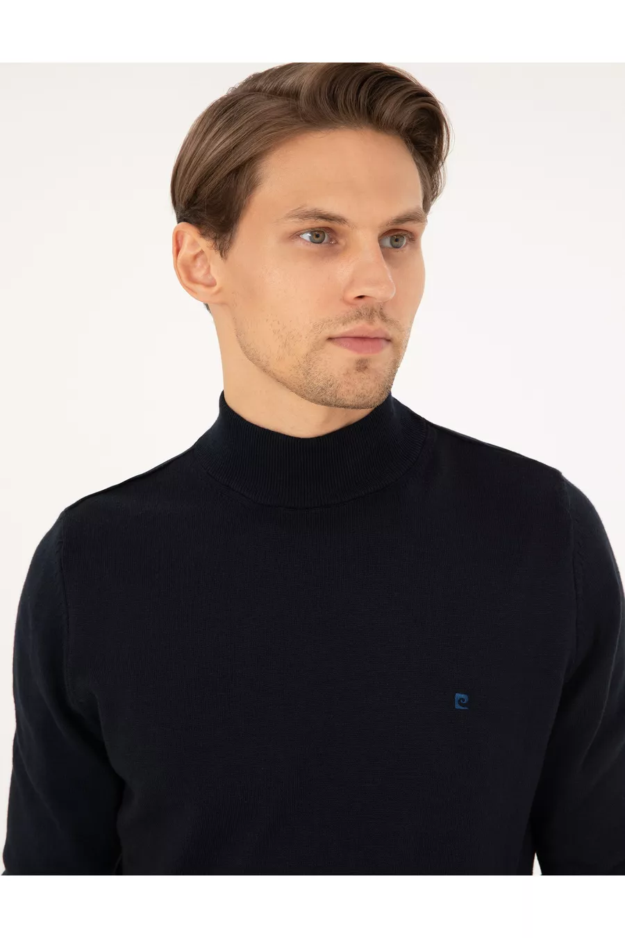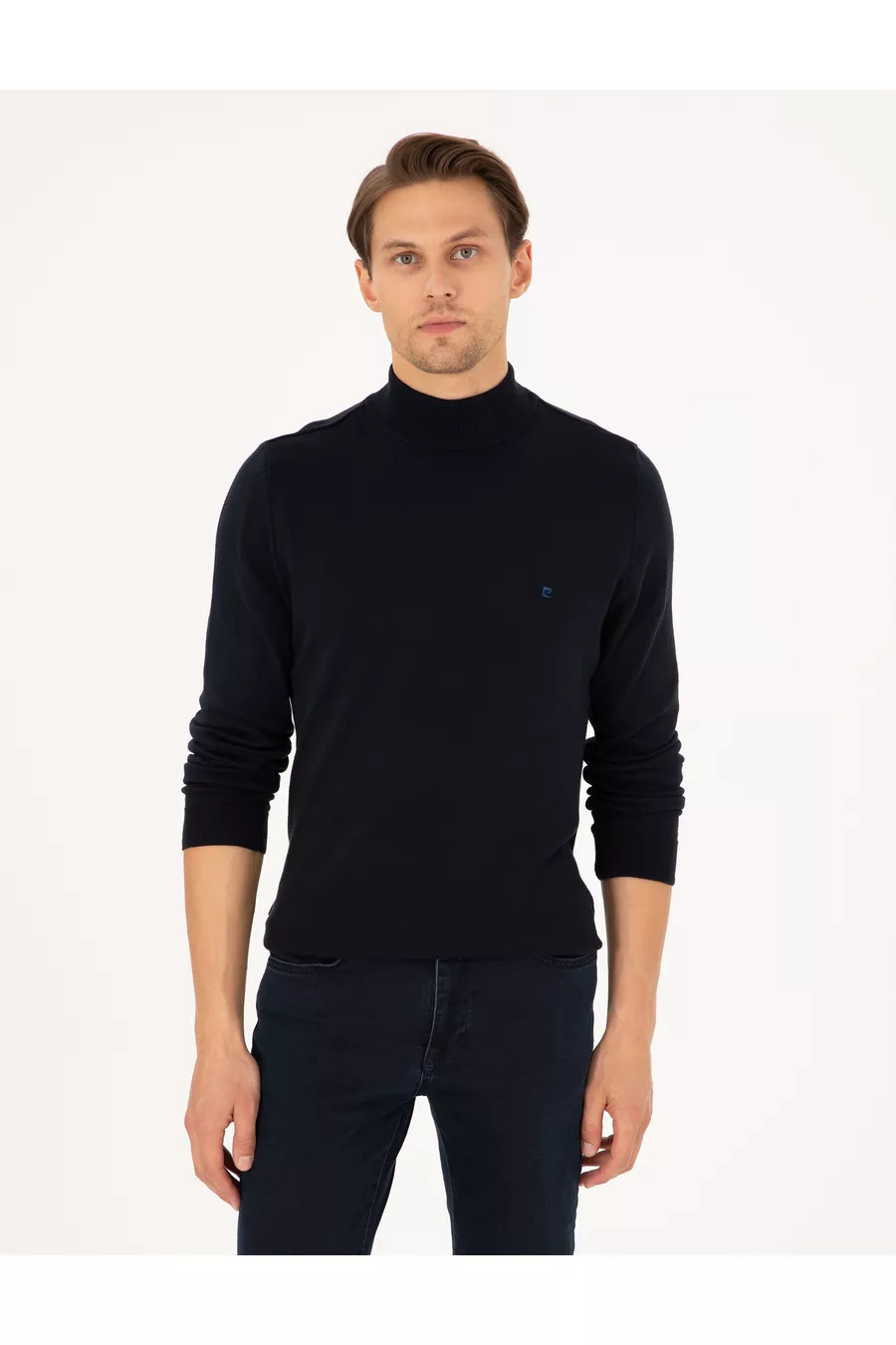 Pull en tricot basique bleu marine à col montant mi-haut slim fit